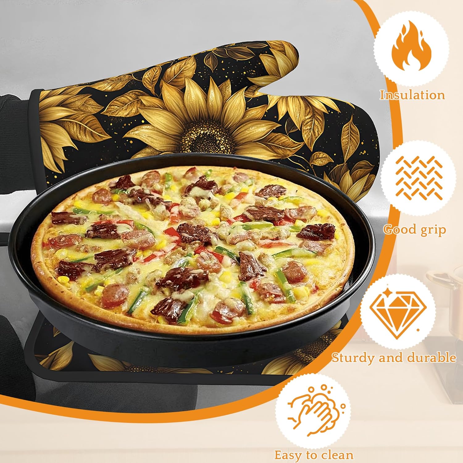 - Heat Resistant: Made from polyester and insulating cotton, these oven mitts and pot holders provide excellent heat resistance to effectively protect your hands from hot pots, pans, and baking trays. Cook with confidence and safety.