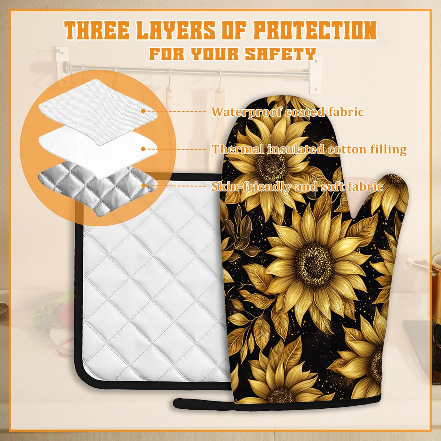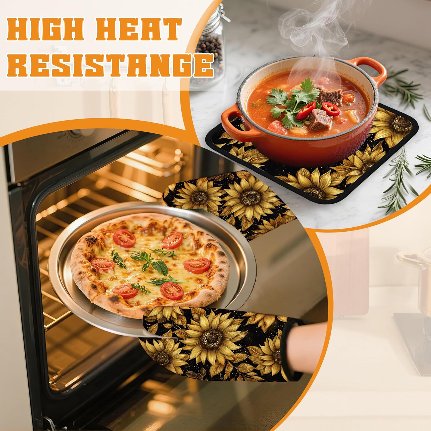 - Stylish Design:Vintage Sunflower Sparkling patterns bright colors,unique prints are exquisite decorations for your kitchen.Brightly colored designs will surely impress your guests and enhance the atmosphere of your kitchen,making your kitchen less monotonous and more lively.