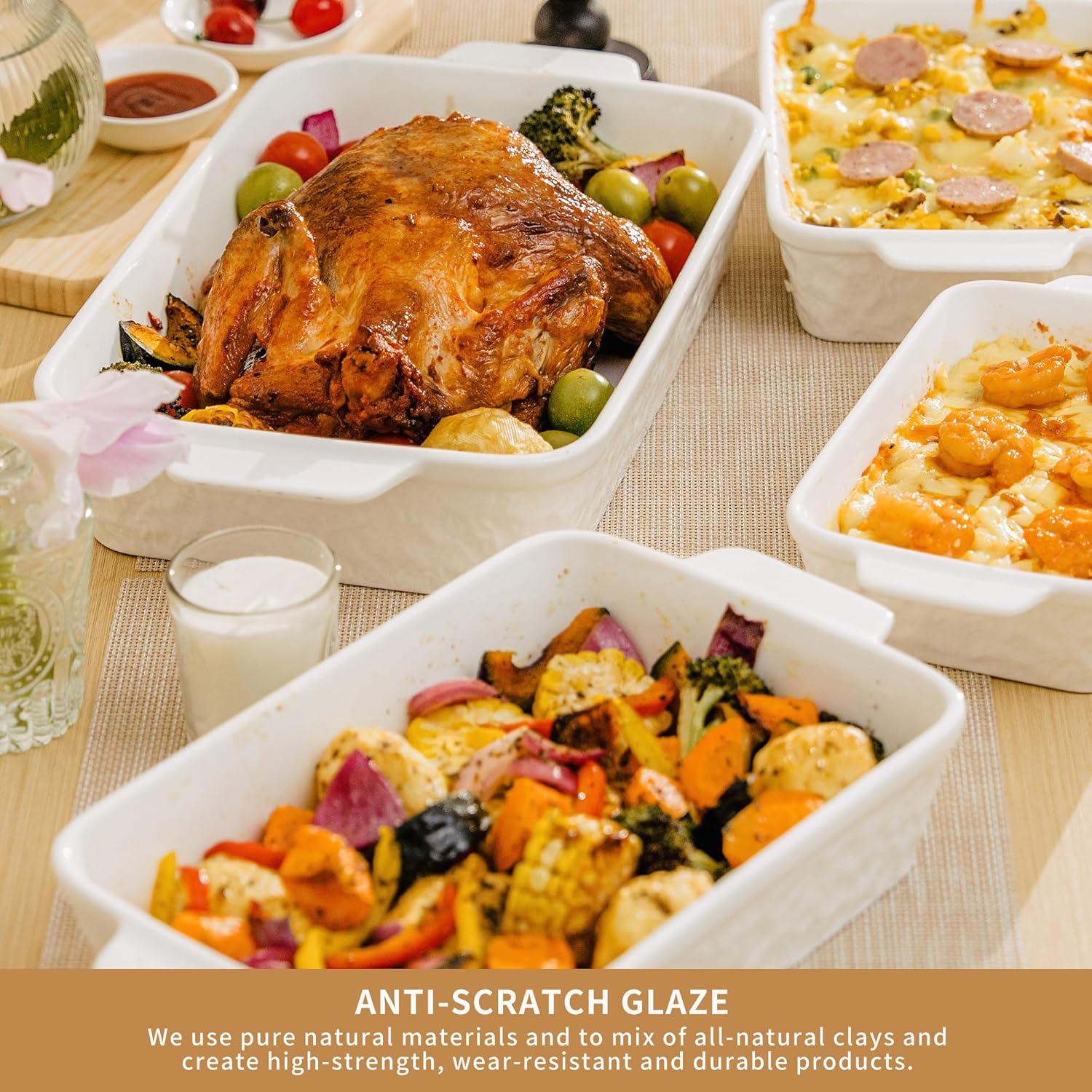 Casserole Dishes for Oven, Baking Dishes, Ceramic Bakeware Sets of 4, Rectangular Baking Pan Set with Handles for Baking, Casserole, Kitchen, Wedding Gift,White