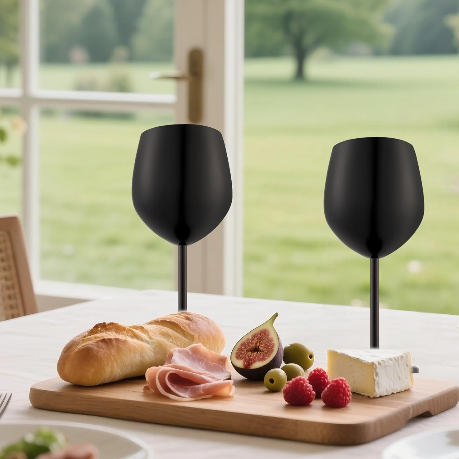 - 【Luxurious & Refined】Hand-polished to perfection, these stainless steel wine glasses feature premium electroplated coloring and a striking metallic finish. With a generous 18-oz capacity and a weighted flat base for superior stability, the sleek stem elevates both elegance and functionality—effortlessly aerate your wine with a graceful swirl