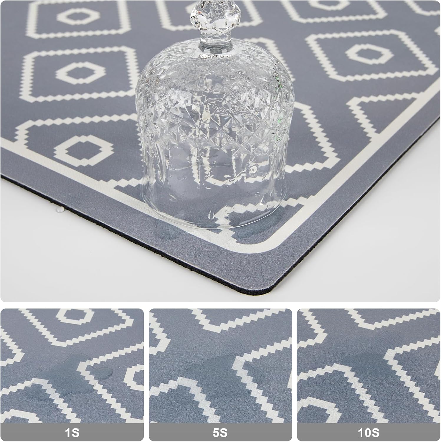 SUEH DESIGN Dish Drying Mat, Absorbent Coffee Mat 23.6 x 15.7 in Quick Dry Kitchen Drying Dish Drain Mat for Kitchen Counter Coffee Bar, Gray