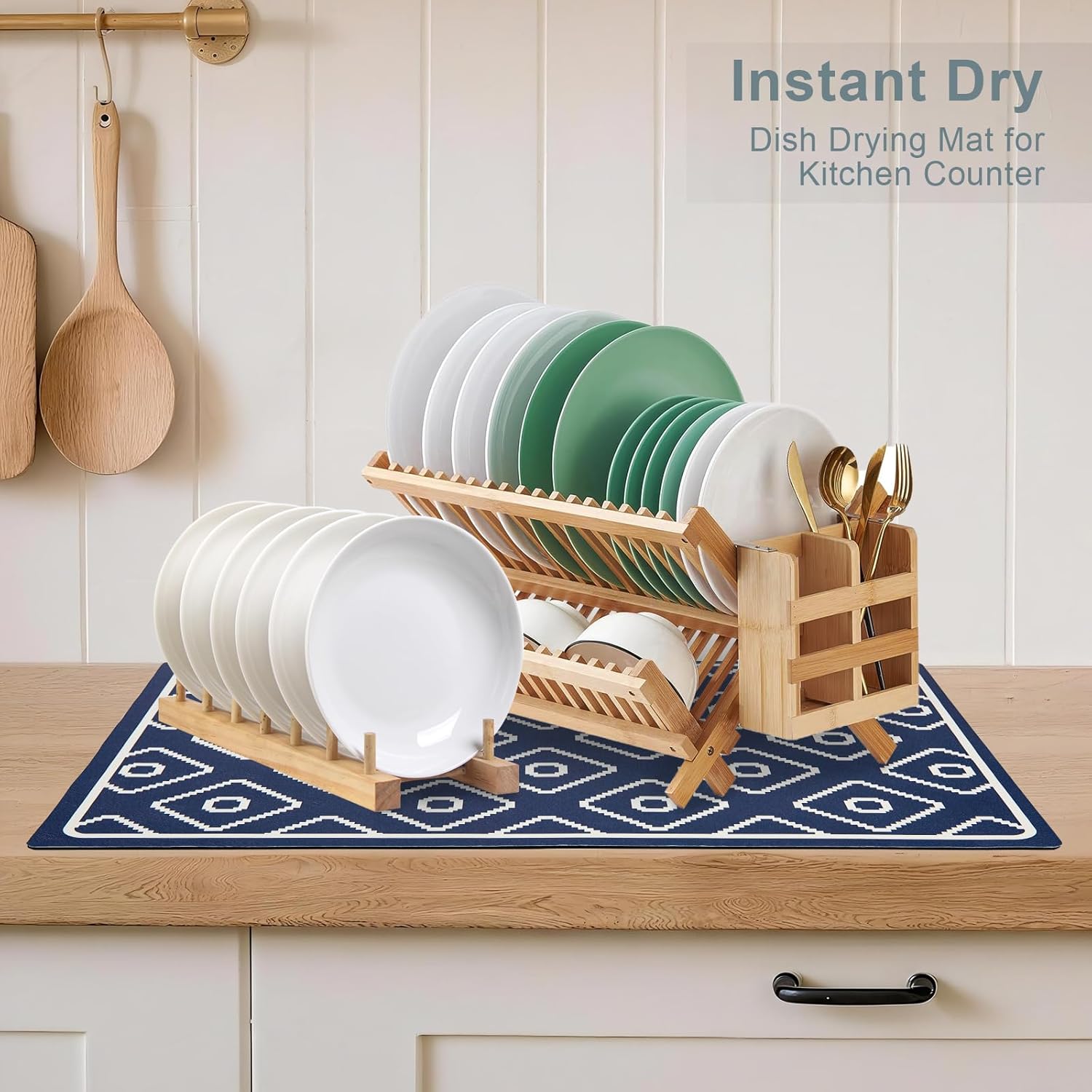 SUEH DESIGN Dish Drying Mat, Absorbent Coffee Mat 19.6 x 11.8 in Quick Dry Kitchen Drying Dish Drain Mat for Kitchen Counter Coffee Bar, Dark Blue