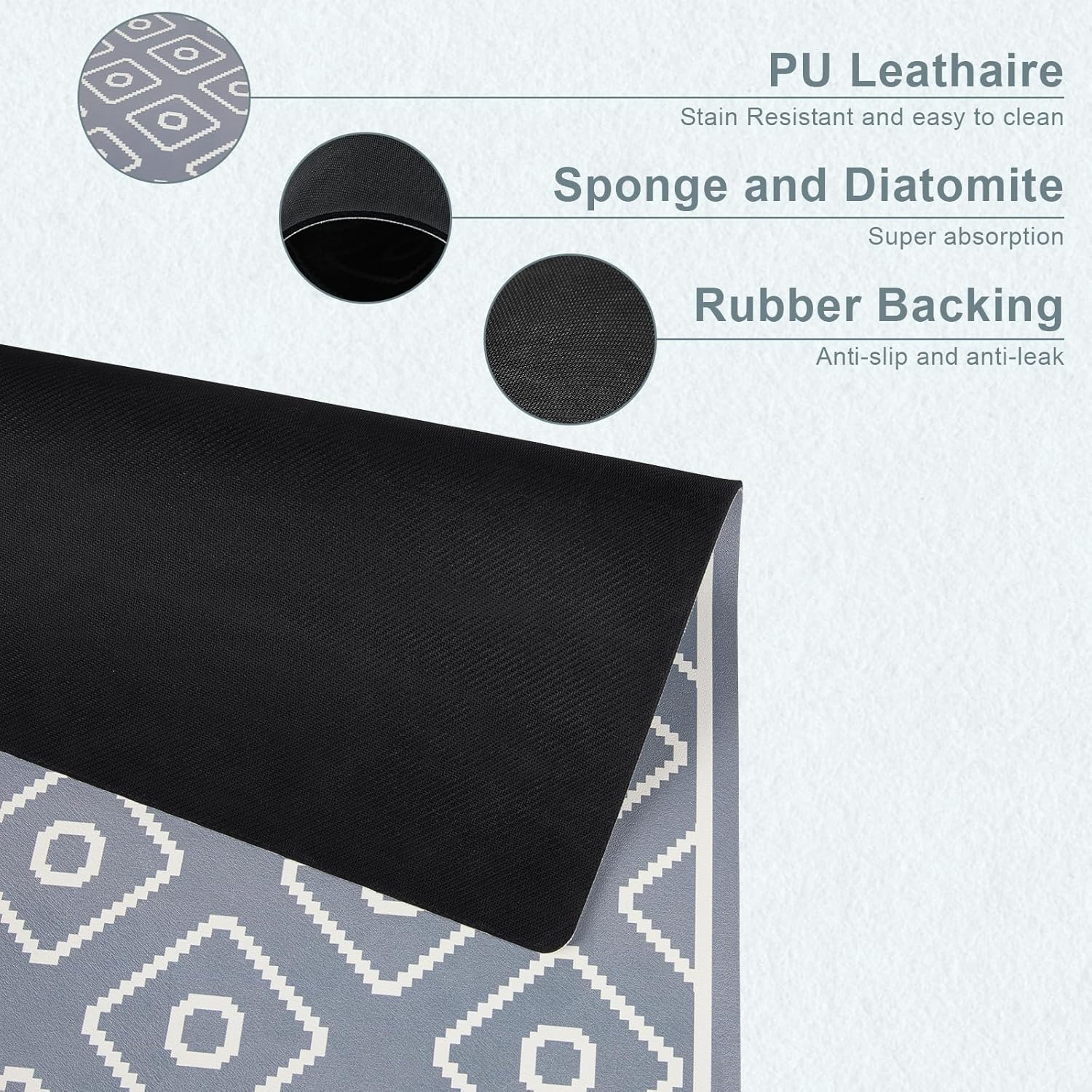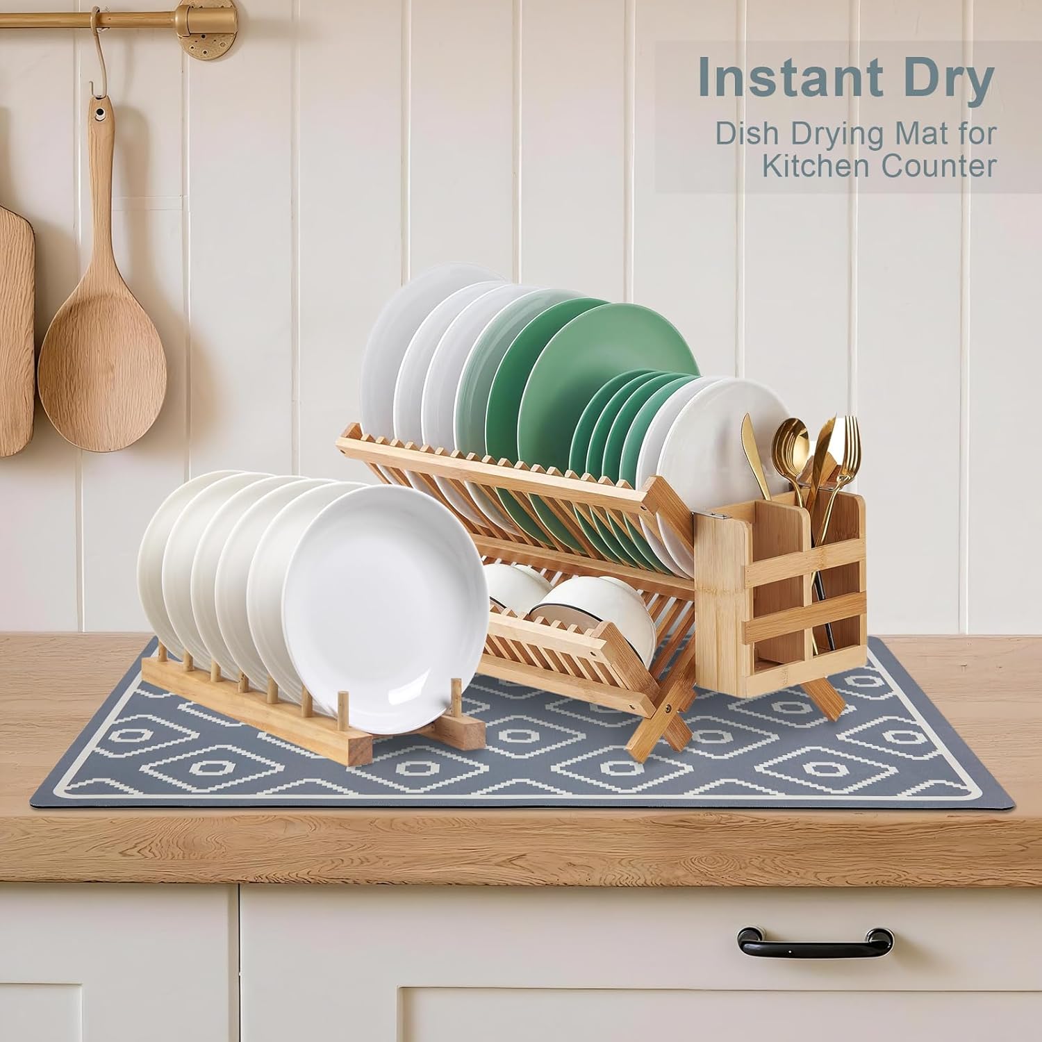 SUEH DESIGN Dish Drying Mat, Absorbent Coffee Mat 19.6 x 11.8 in Quick Dry Kitchen Drying Dish Drain Mat for Kitchen Counter Coffee Bar, Gray