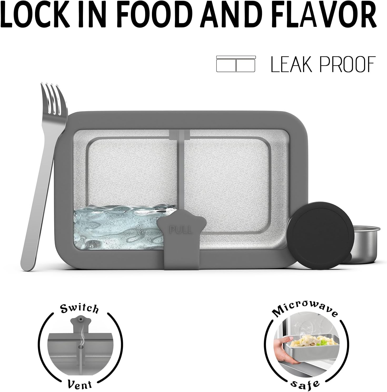 - Complete Bento Lunch Box Set: 1*42oz stainless steel bento box for adult, 16.9oz thermo with 6.7oz snack container, 1*sauce container, 1*fork, 1*spoon, and 1*insulated bag—everything you need in a kit