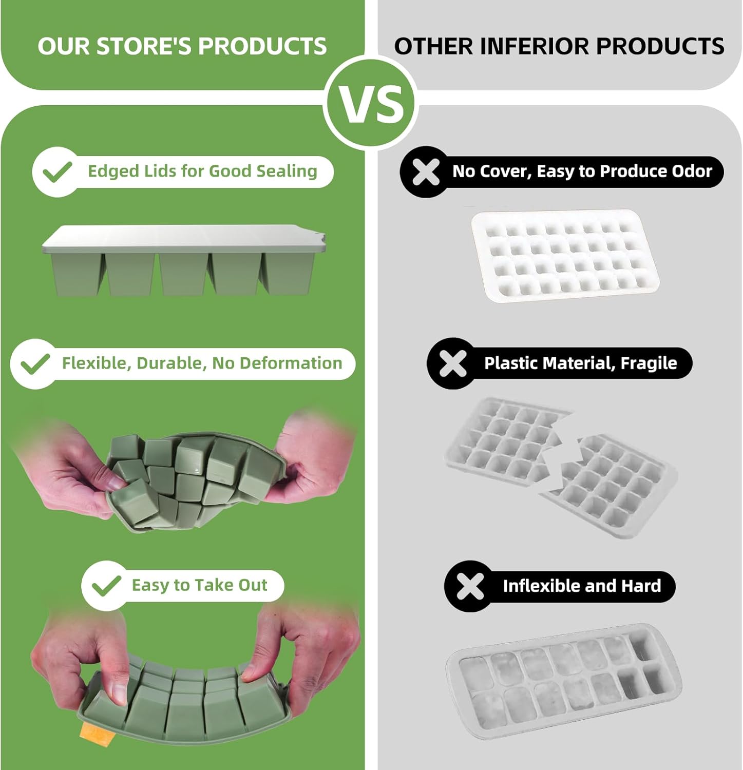 - 【Trusted Food-Grade Silicone】Safety first! Our silicone ice cube trays with lid are made from BPA-free, food-grade material.This durable material withstands extreme temps, resisting warping and odors. A must for every family! These ice cube tray silicone make clean, safe ice perfect for drinks, baby food, and snacks.