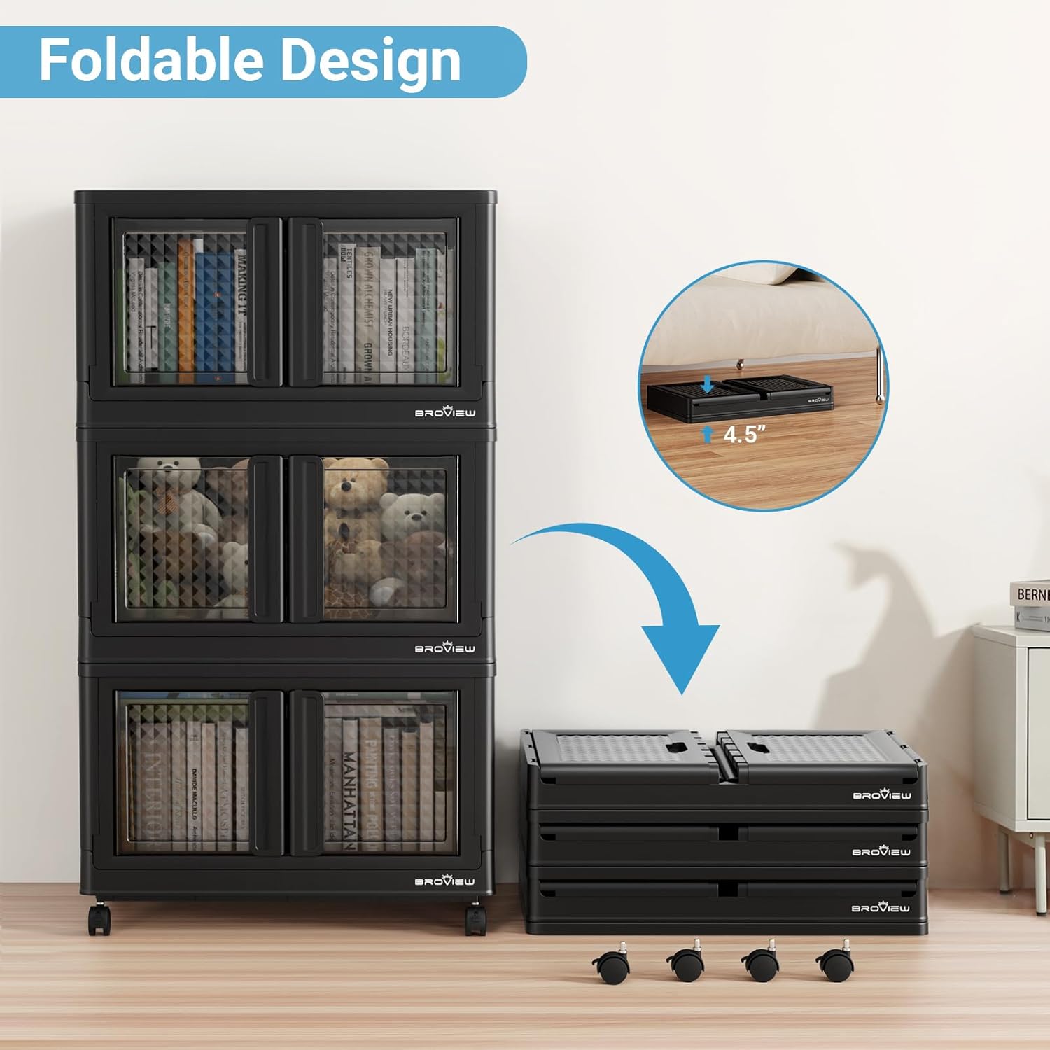 - 【Space-Saving Stackable & Collapsible】Maximize your storage footprint. Stack bins vertically as modular cabinets (bedside, clothing, books, kitchen) and collapse them nearly flat when not in use. Perfect for closets, laundry rooms, garages, playrooms, classrooms, dorms, and car trunks – featuring a roomy, odorless design.