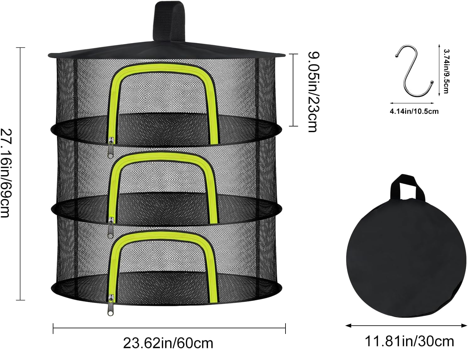 - Size and Usage: There are 1-8 layers of herb drying racks to choose from, with the 3 layer measuring 23.6 x 23.6 x 25.98 inches. 3 layer drying net can dry of plants, flowers, buds, bulbs, fishes, weeds, clothes, jerky, meat, food, basil, vanilla, onion, garlic, cinnamon, nuts, and etc