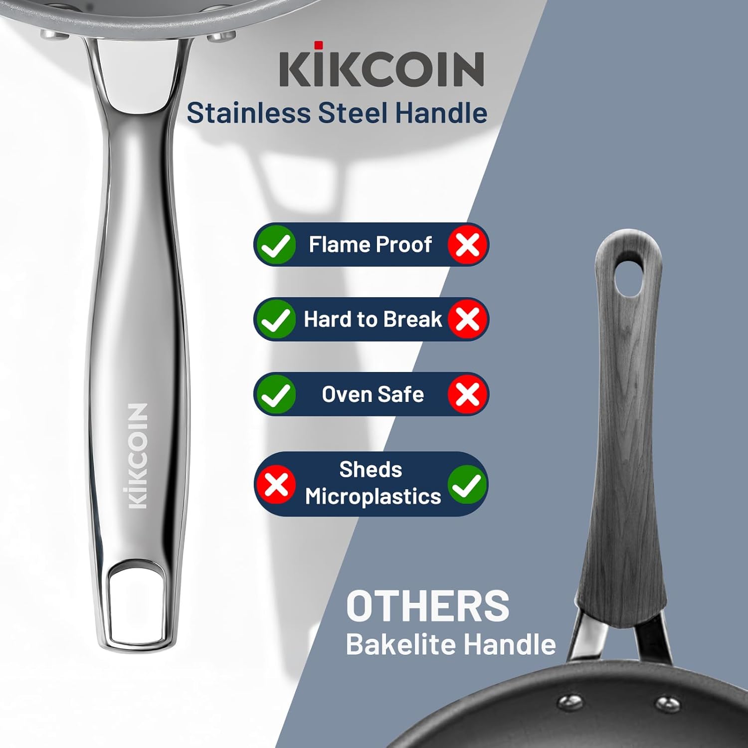 Kikcoin Ceramic Nonstick Frying Pan Skillets - 3 Sizes Omelette Pans for Healthly Cooking, 8+9.5+11 Inch Egg Pan with Stay Cool Handle, Free of PFAS PFOA PTEE, Oven/Dishwasher Safe for Busy Kitchen