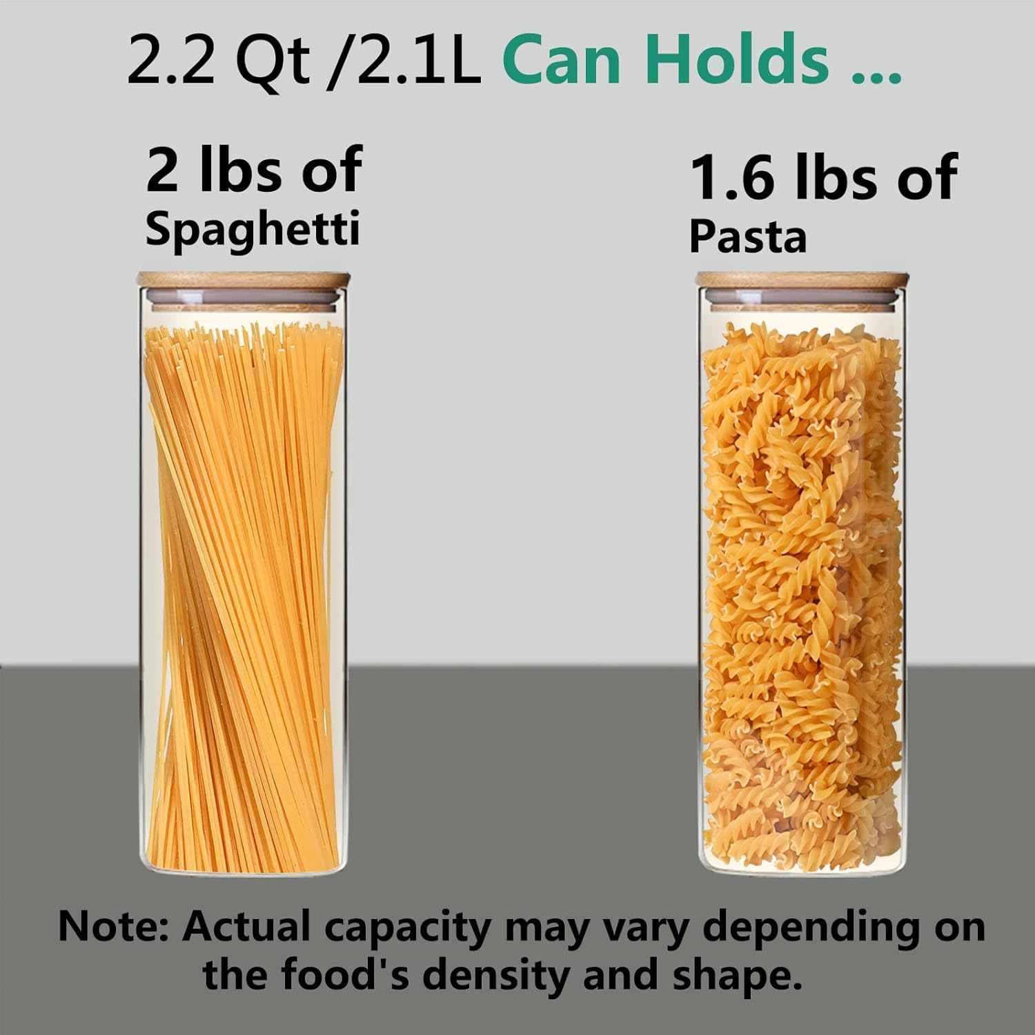 - [Tall and Large for Food Storage] 3 Square jars with , dimensions are 3.94x11.26 inches(10cmx28.6cm),It can store pasta, noodles, flour, cereal, tea,cookies, candy, flour, rice, beans, spice, cereals etc.Store goodies for foodies and keep your kitchen organized