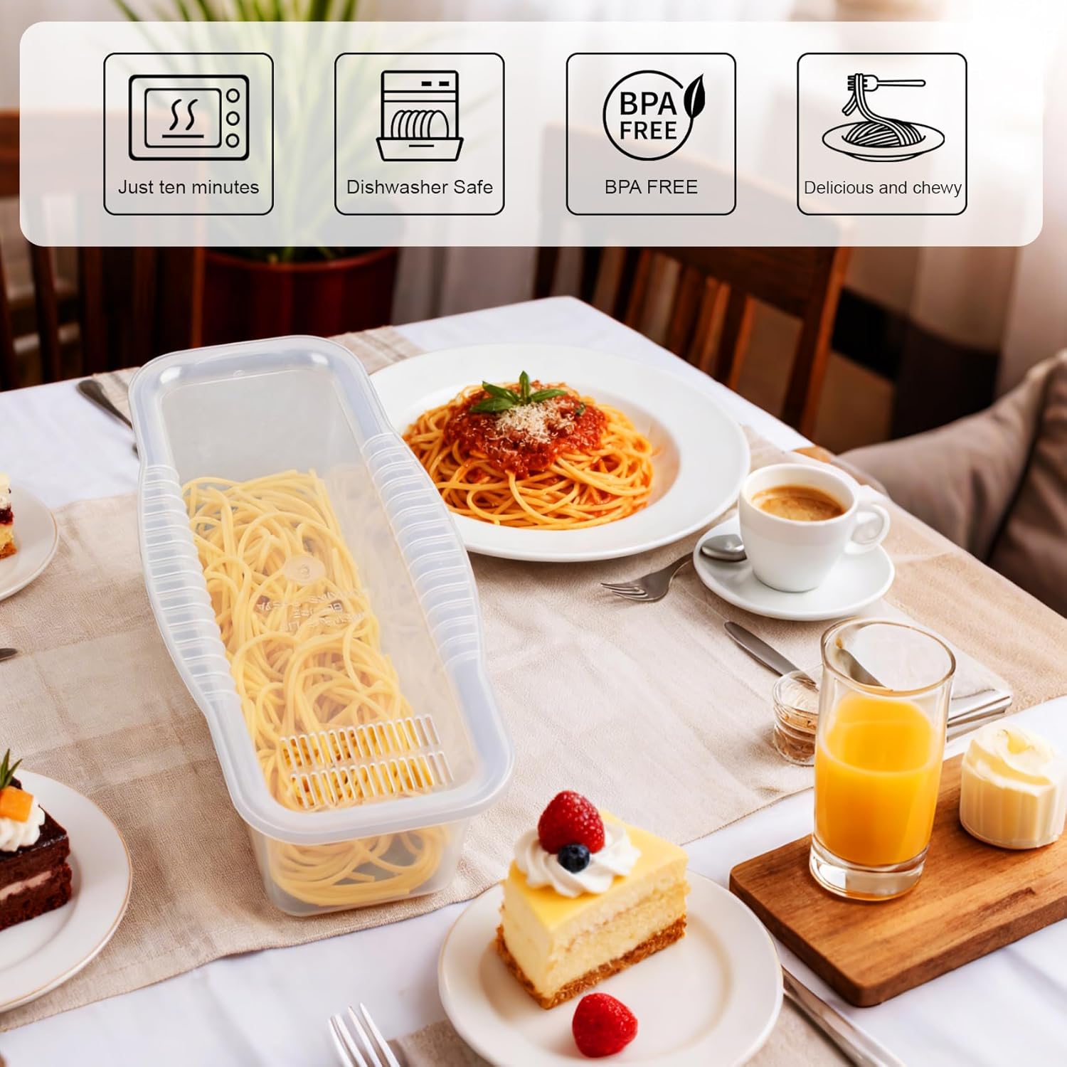 - 【10-Minute Quick-Cook Pasta Cooker】Made for the fast-paced lives of office workers and students! This microwave pasta cooker with strainer lid and semi-transparent body for easy cooking checks. No stovetop needed, works with most microwaves, and heats up in just 10 minutes. Satisfy your hunger anytime—quick and hassle-free!