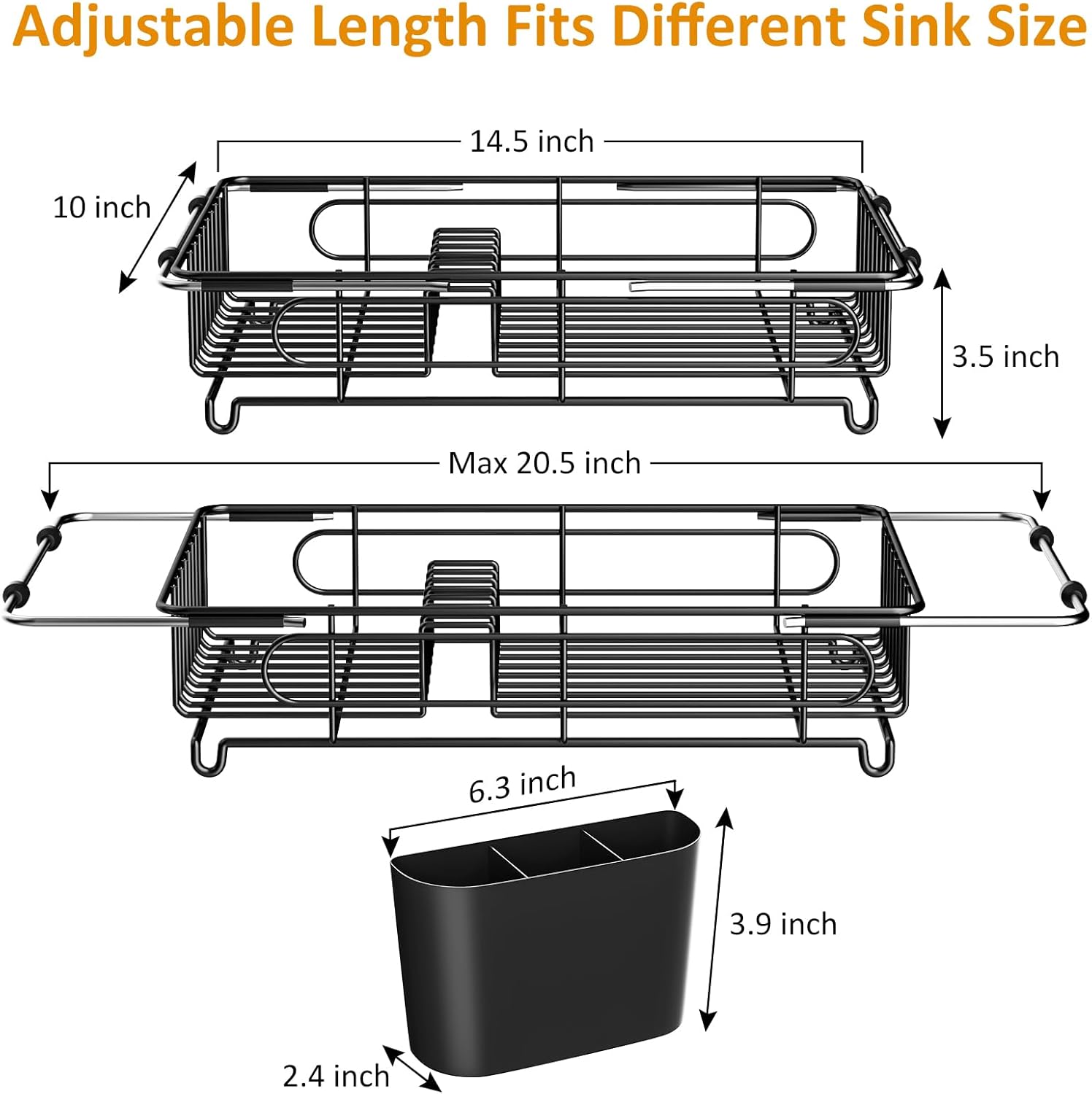 - 【3-in-1 Dish Rack】Transform your small kitchen space with this expandable dish drying rack! Easily adjust the length to perfectly fit inside the sink, above the sink, or on the countertop. Ideal for apartments, RVs, or kitchens with limited space, it perfectly meets your diverse needs for dish drying and storage. Note: Product dimensions are 14.5“-20.5” L x 10“ W x 3.5” H.Please check your sink size before purchasing to ensure a proper fit