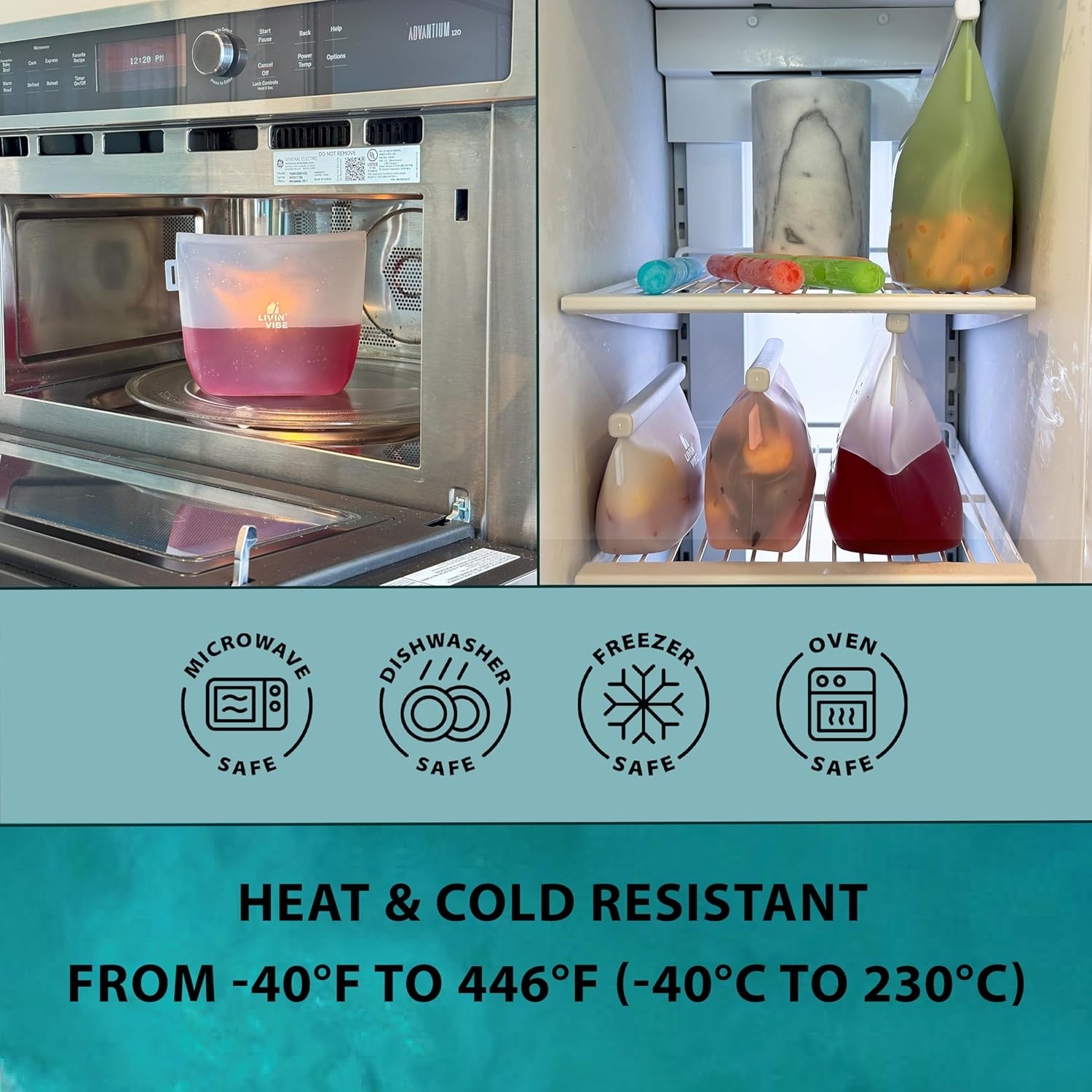 - Leakproof & Airtight Seal --- Designed with a secure double-seal zip top, these silicone food bags prevent leaks and keep food fresh — ideal for liquids, sauces, soups, and marinades.