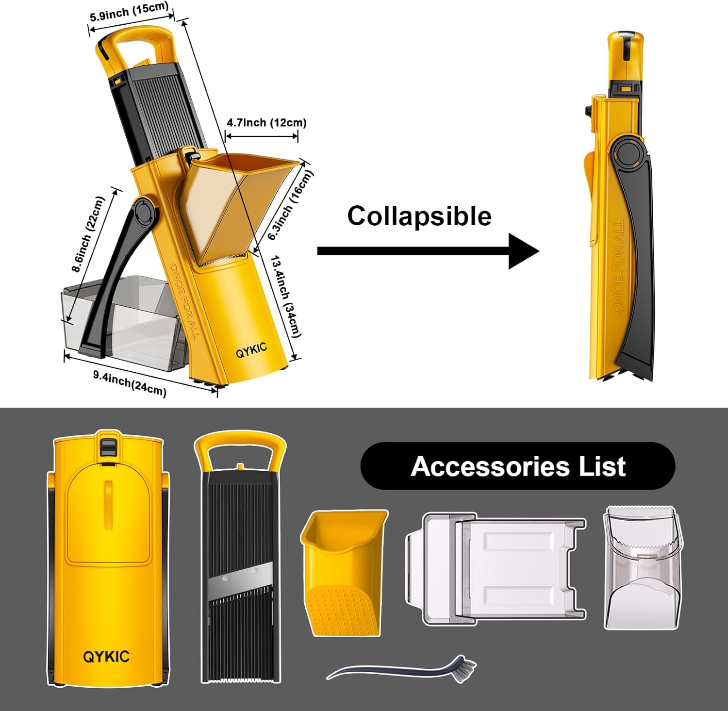 - ✅AFTER-SALE WARRANTY: We want to make your life easier, better, and more enjoyable. If you're not happy with your vegetable chopper and slicer, we'll be happy to replace it. Please read the instruction manual carefully before using the QYKIC food slicer and chopper. If you have any questions or problems, please message the seller through Amazon and we'll reply within 24 hours. ONCE FOR ALL.