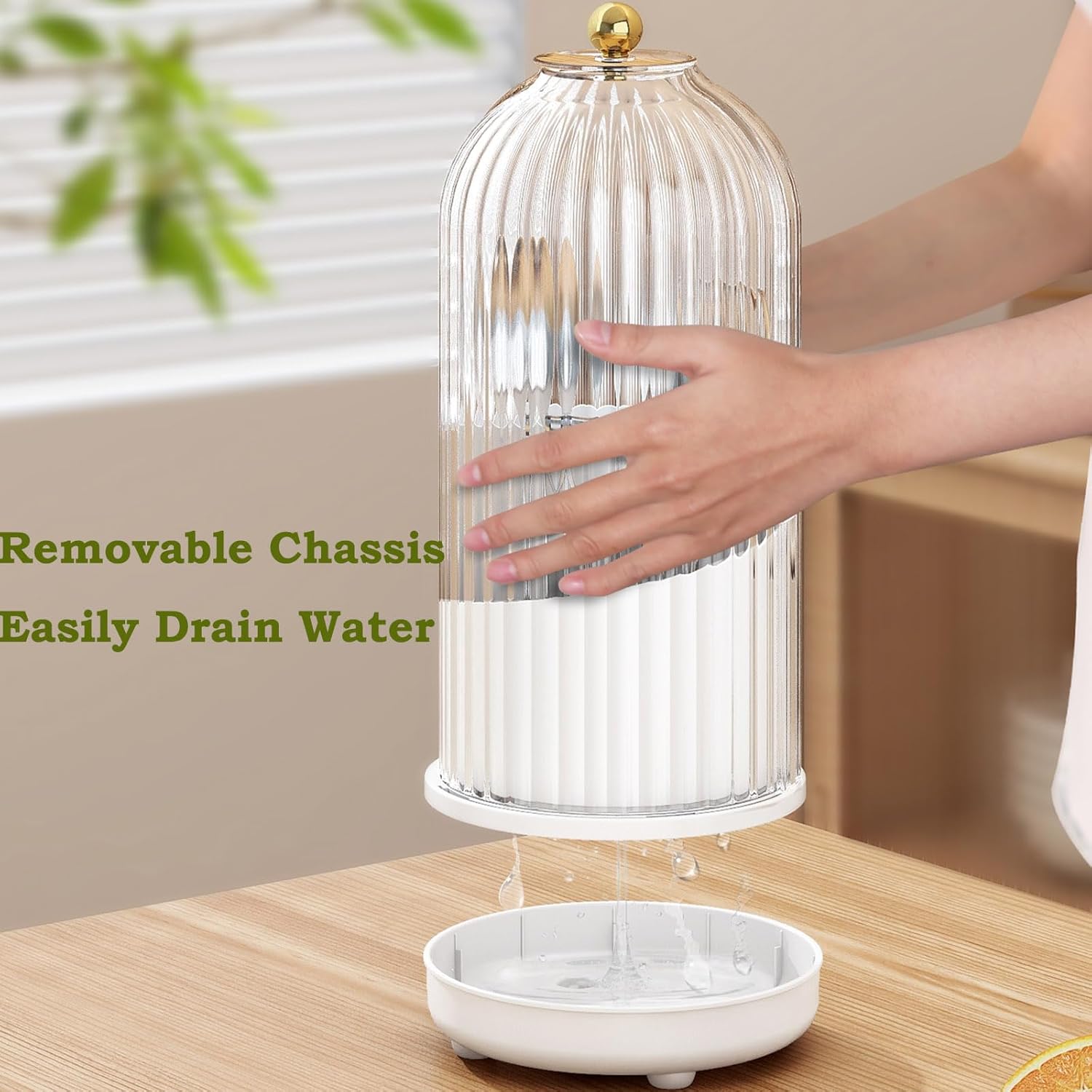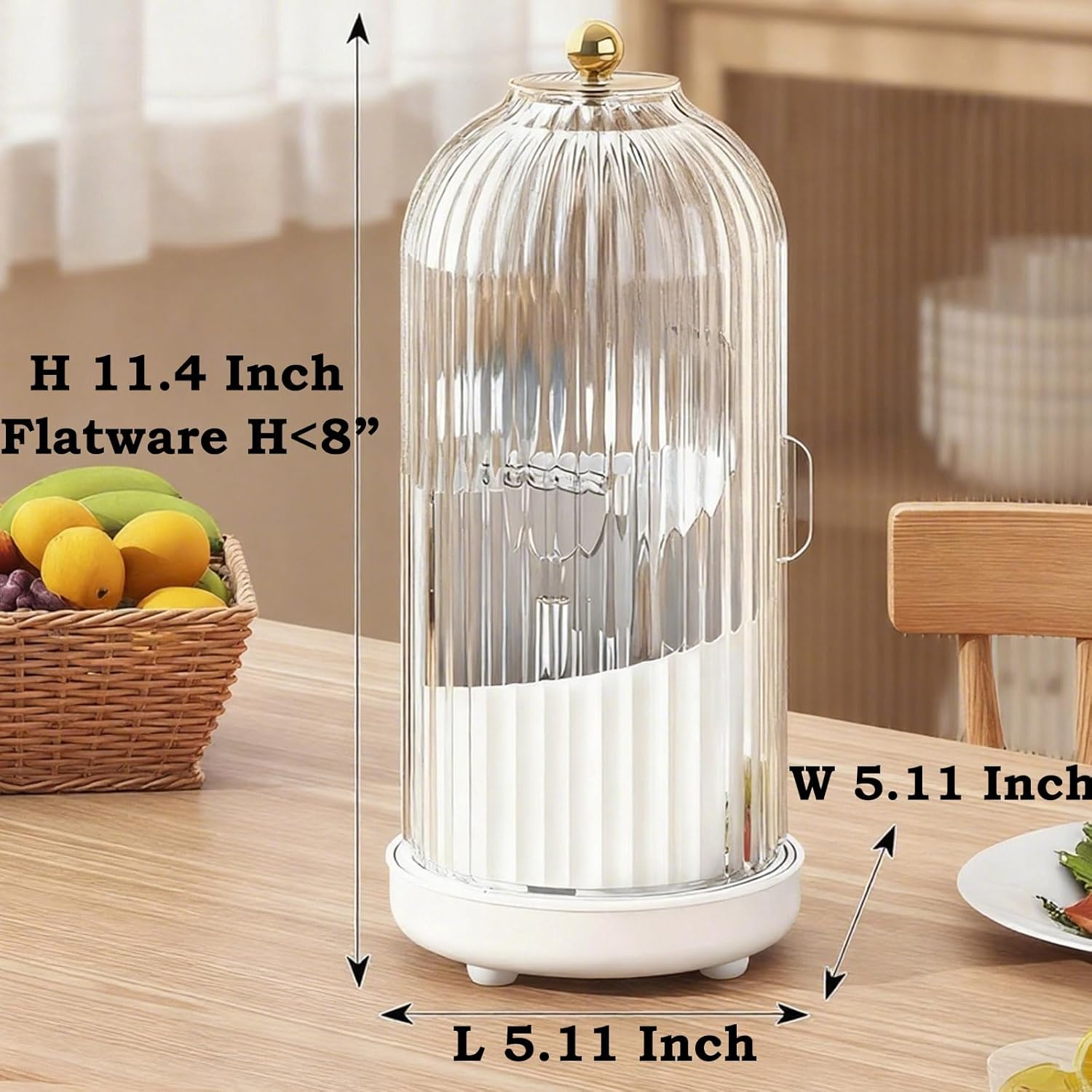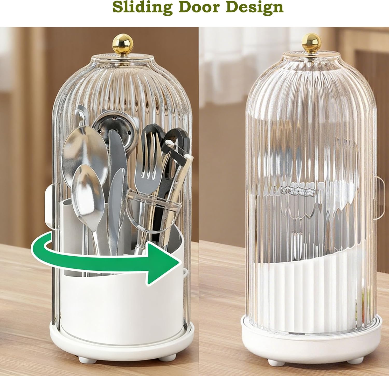 JEESA Utensil Holder with Lid, 360° Rotating Flatware Organizer for Cutlery Spoon Fork(H Less 8"), Silverware Caddy Organizer Drainage Dustproof Flatware Holder Kitchen Countertop Storage, White