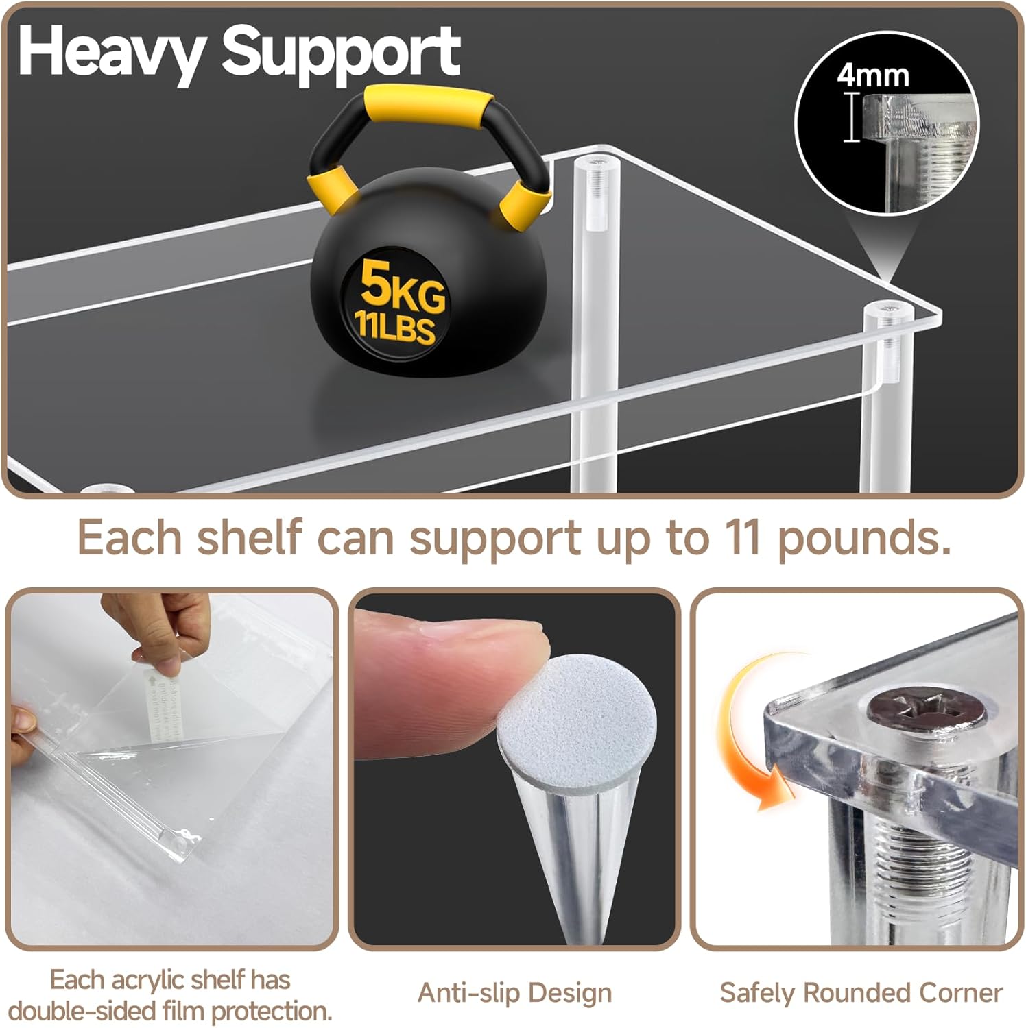 - 【EASY TO WIPE OFF GREASE!】Compared to other goods that made of plastics, this clear acrylic shelves is easy to clean and wipe off grease! Showcase your collection with this exquisite spice rack—it will add an artistic touch to your room!