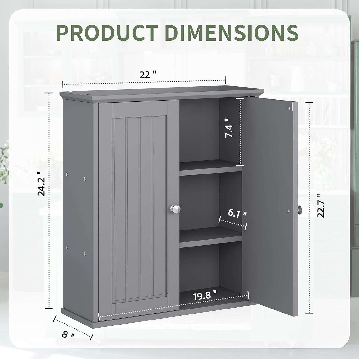 - [STYLISH DESIGN] Meilocar over toilet storage cabinet has a modern and simple design, which is suitable for any decor. Total dimension: 22"W x 8"D x 24.2"H, deeper and wider. The medicine cabient is designed to store towels, cosmetics, sandries, medicine, green plants, etc. and make the room neat