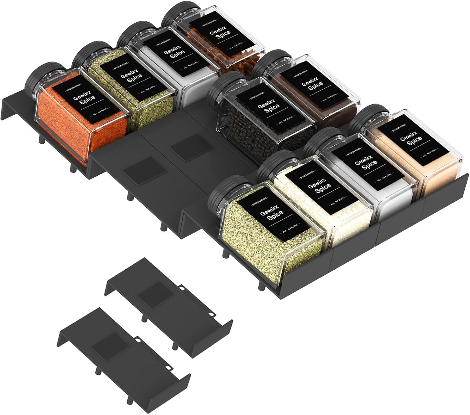 - Easy Assembly: No Tools Required! Our drawer spice rack is easy to install and use. Simply place the inserts in your drawer and adjust it to the desired size. Keep your countertop neat and tidy