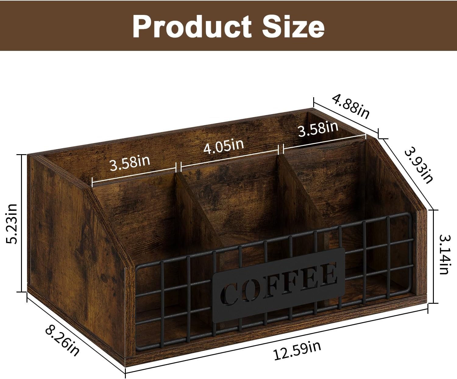 - Vintage Design: Crafted with welded iron wire and a rich brown finish, this coffee station organizer blends durability with brown charm. The iron wire design allows easy visibility and access to stored items while enhancing your coffee corner’s aesthetic.