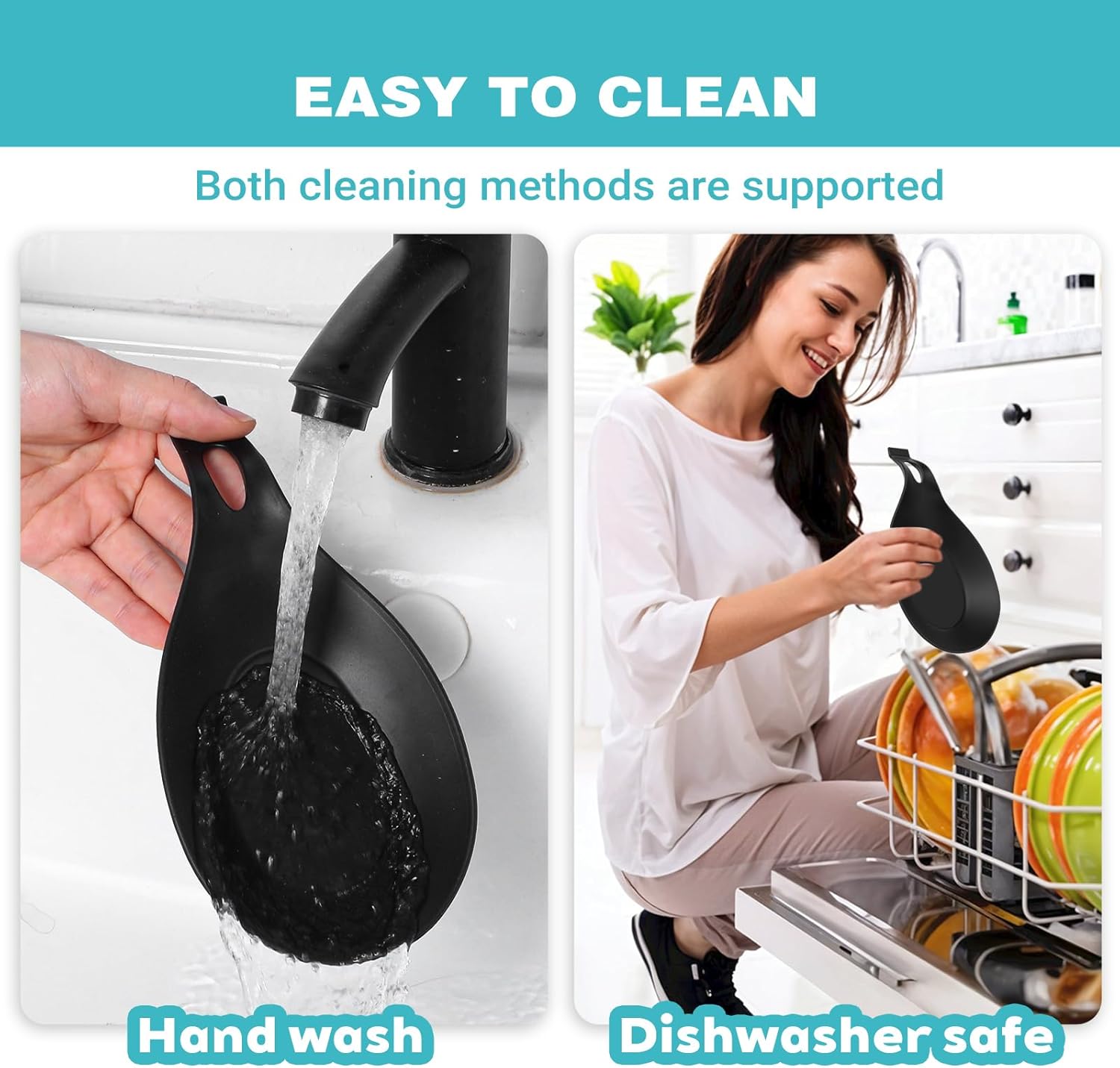 - 【Easy to Clean】Effortlessly clean the spoon holder for stove by rinsing or placing it in the dishwasher. The silicone spoon rest is designed for quick and hassle-free maintenance