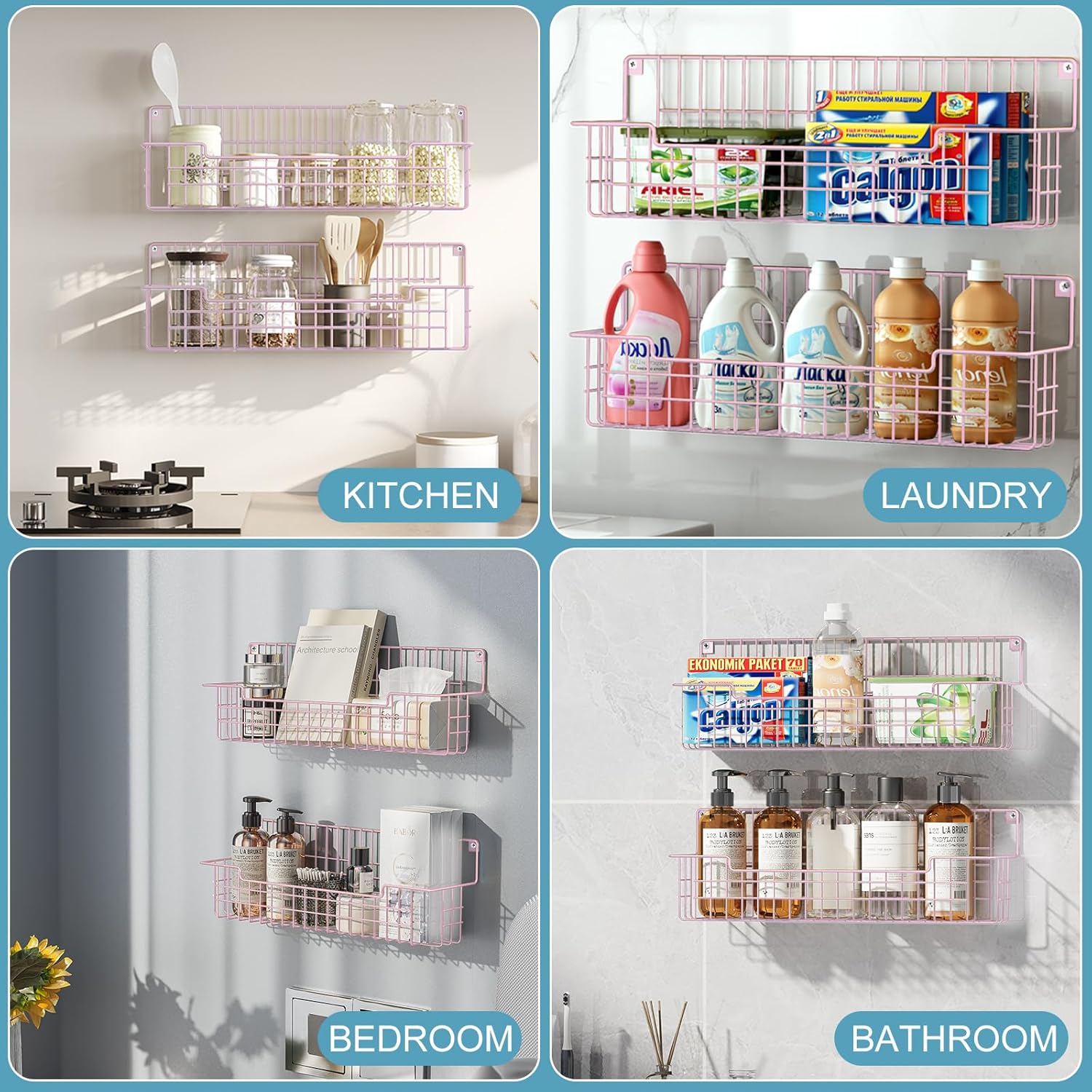 Spice Rack, 4-Pack Seasoning Organizer Wall Mounted for Kitchen Storage Organization, Metal Spice Holder Shelf for Cabinet, Pantry, Pink