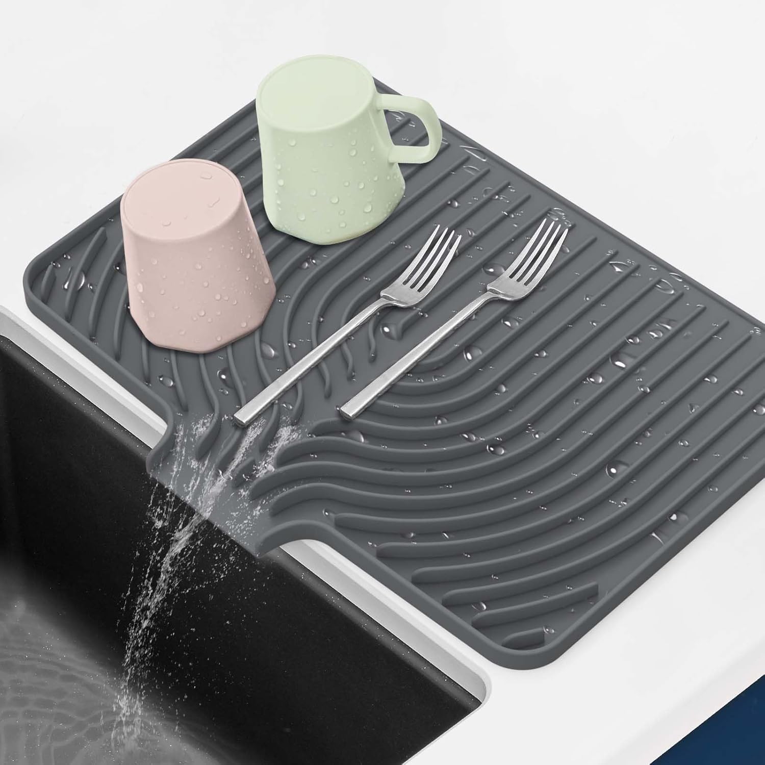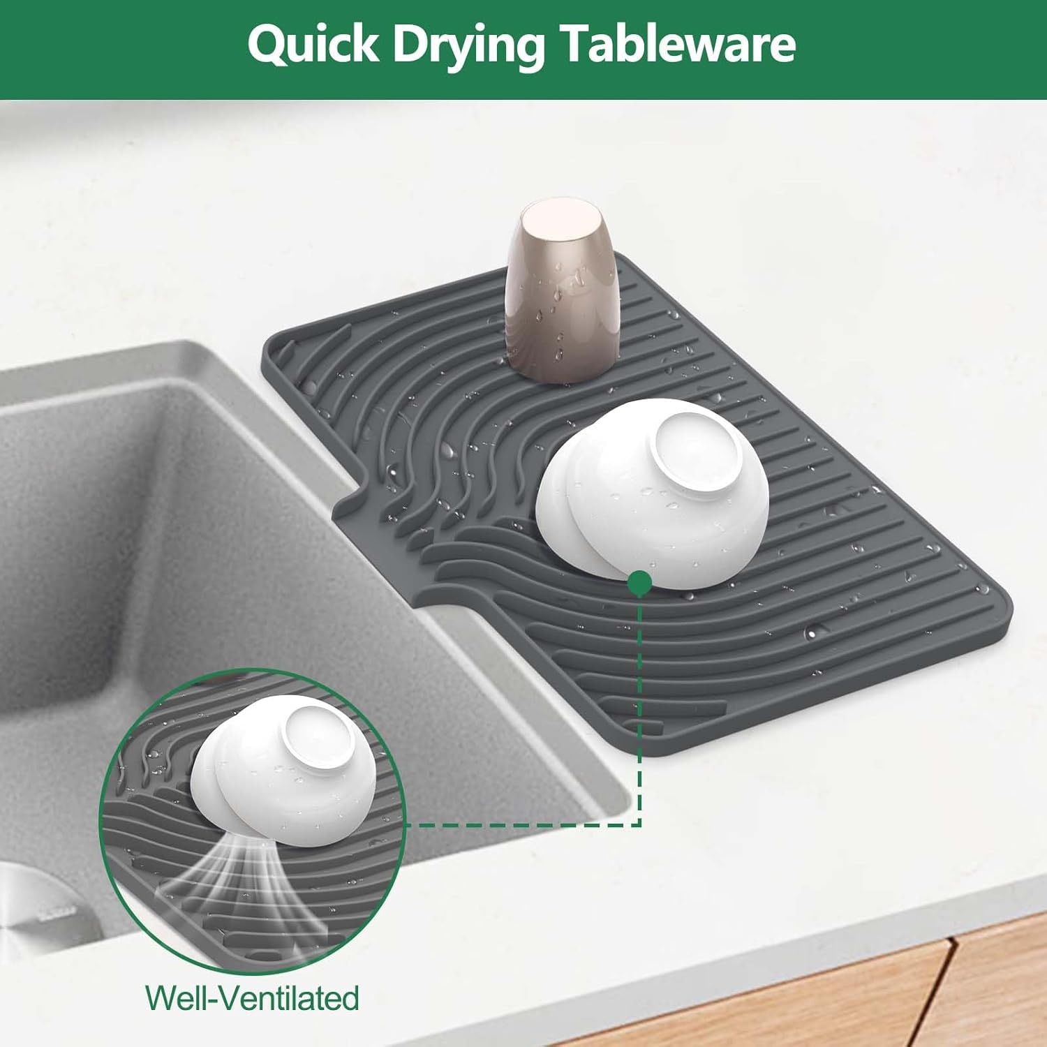 GUUKIN Dish Drying Mat, 14.7"x10.2" Drying Matt Kitchen Counter, Non-Slip Drying Pad, Easy Clean Pad for Countertop Protection, Multi-Functional Use (Grey)