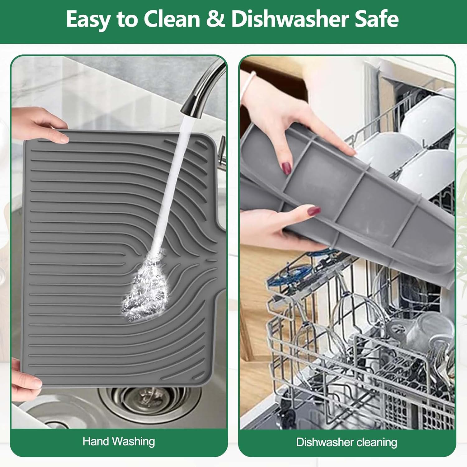 - Anti-Slip and Heat-Resistant: Dish mat drying kitchen mat has a great anti-slip design, keeping dishes, fruits, veggies and glassware steady. Besides, it's heat-resistant up to 450°F (230°C), safeguarding countertops well from hot pots and appliances