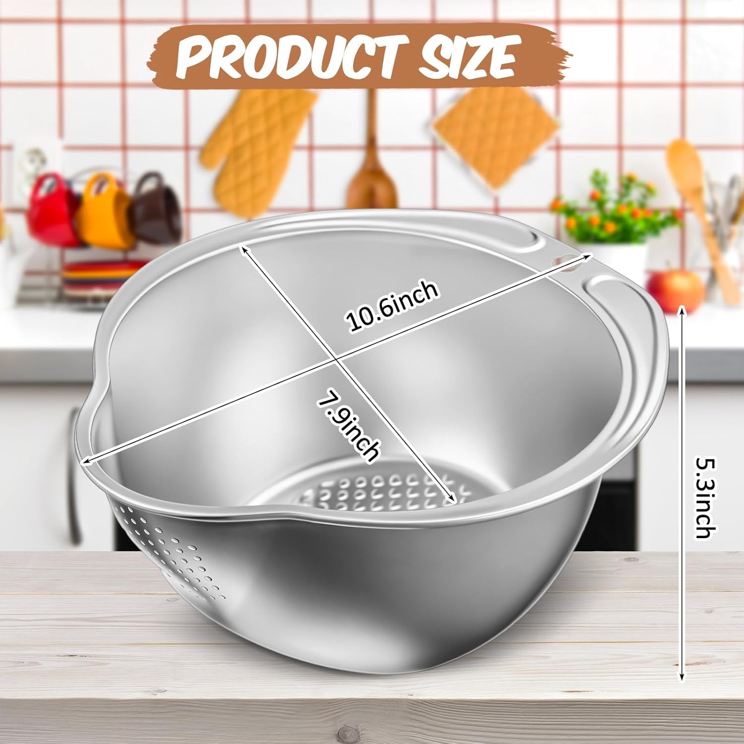2 Pcs Rice Washer Strainer Bowl 4-in-1 Washing Bowl for Quinoa, Stainless Steel Rinser with Side Drainers Small Colander for Cleaning Fruits, Vegetables, and Beans - Versatile Kitchen Tool