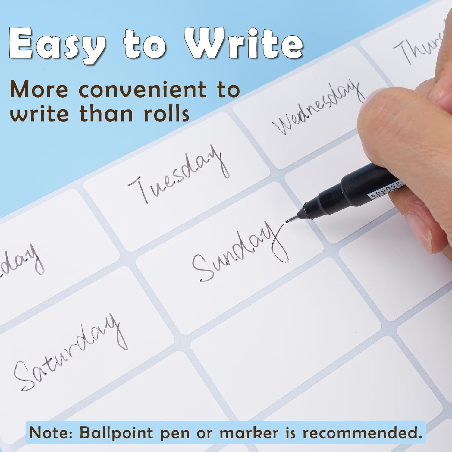 - EASY TO WRITE –– Works with ballpoint pens, markers, and pencils(markers are the best). Smooth writing, easy to mark dates, contents, or notes