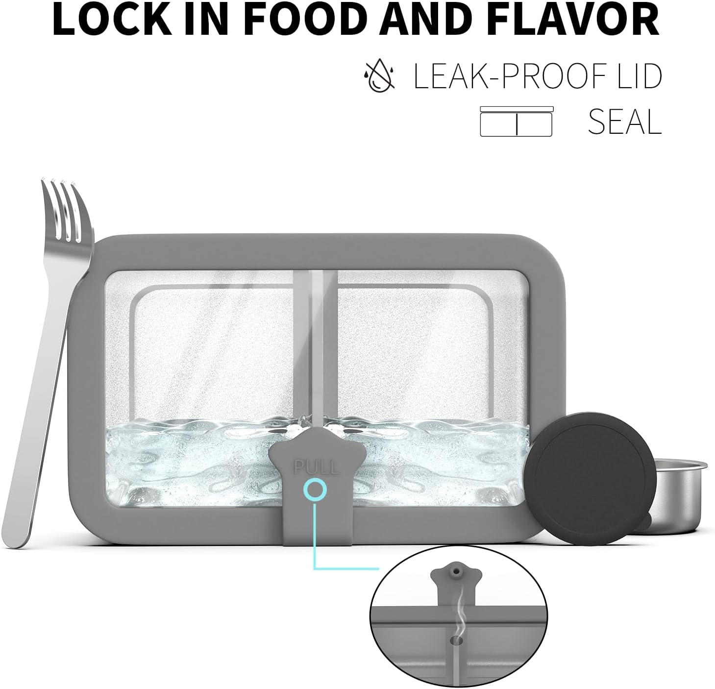 - No Spills and Mess: Check that the silicone ring of the lid fits tightly with the container, and check that the safety switch is tightly closed to form an effective leak-proof, saying goodbye to the mess on the go. (The lid is leak-proof, but the compartment is not leak-proof, it is recommended to pack dry food and semi-dry food)