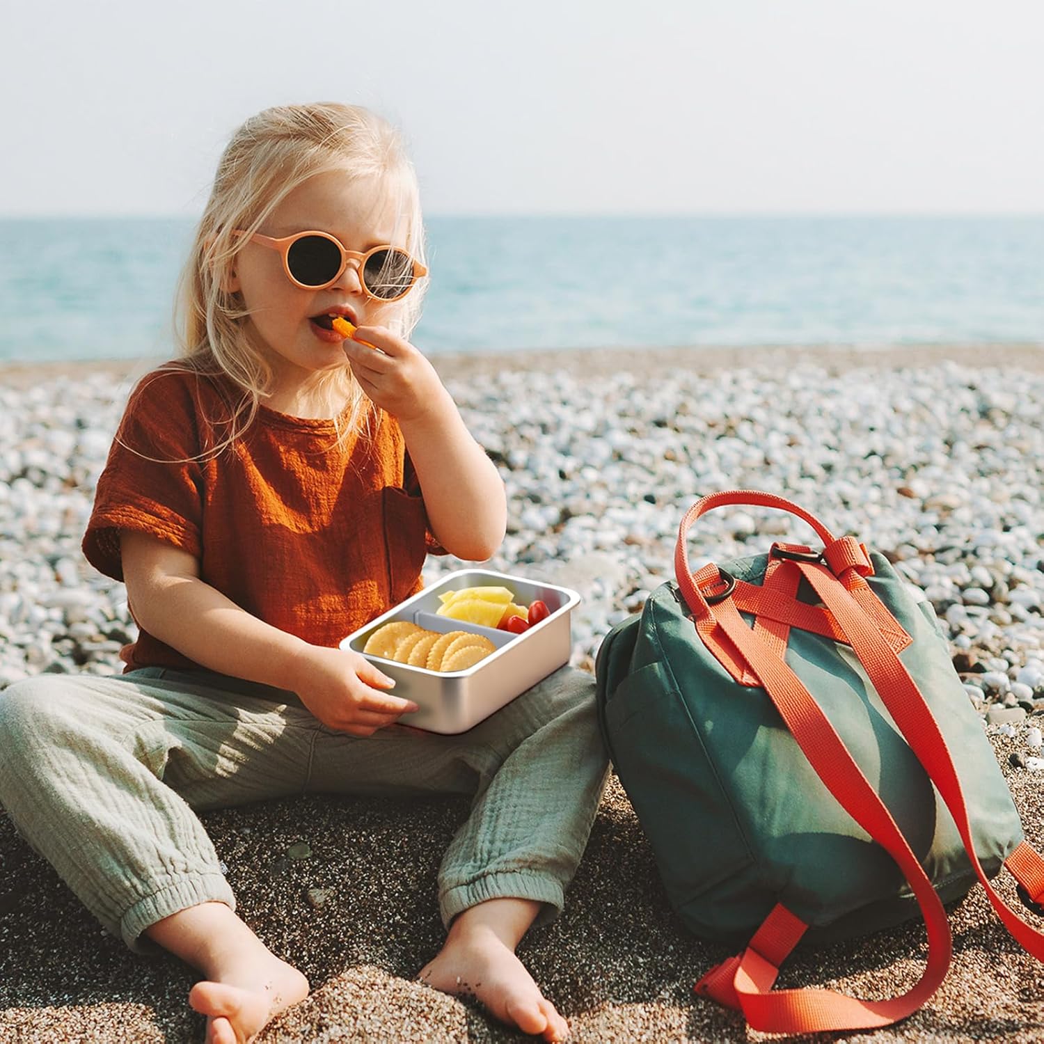 - All-in-One Lunch Solution: This stainless steel bento box for kid comes with a fork and a small sauce/snack/fruit cup, which can be easily put into a lunch bag, backpack. Whether you carry it with you, go to school, travel, or fill it with snacks for a family outing, this lunch box can withstand all kinds of tests
