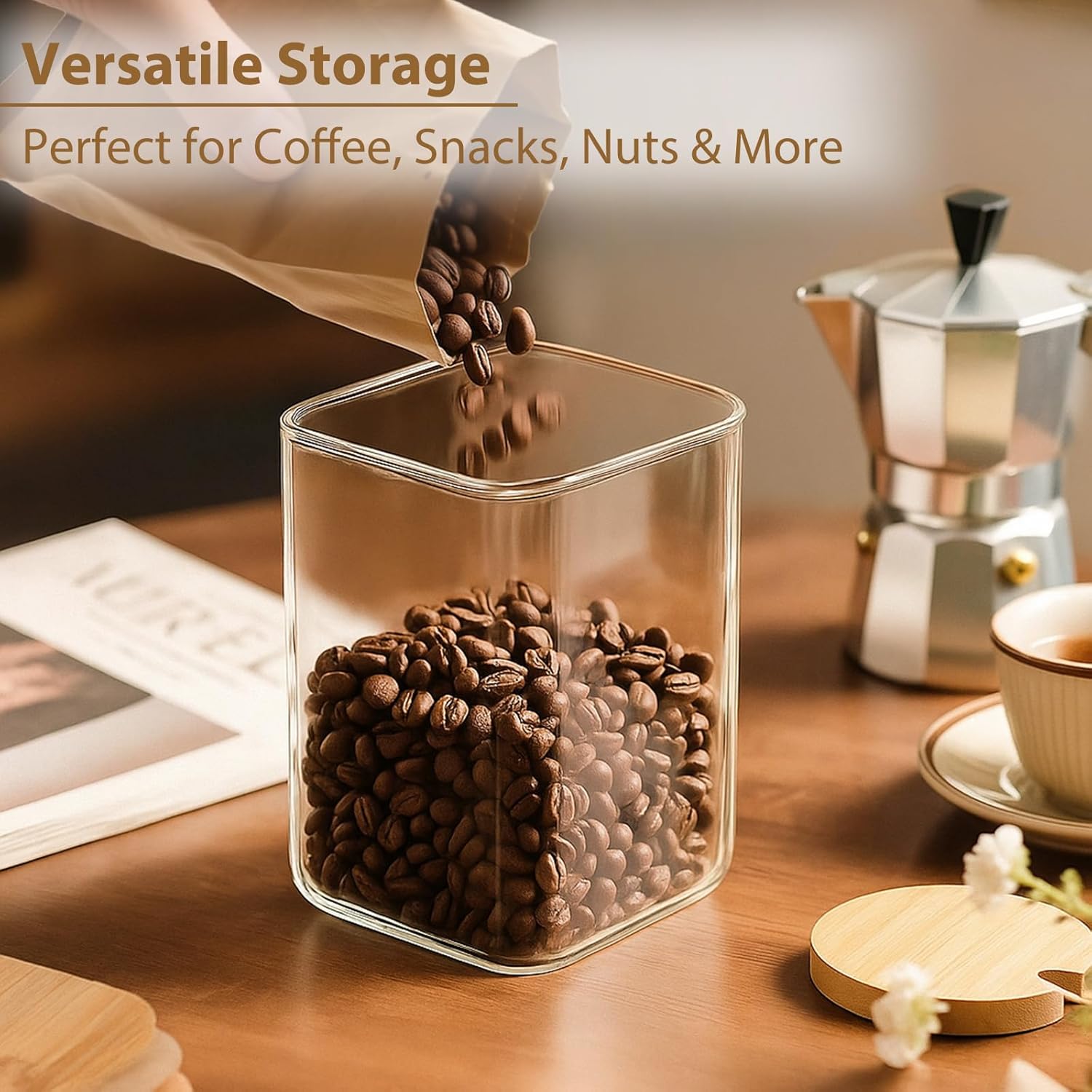 - Multipurpose Use in Any Kitchen: These square glass storage containers with lids are ideal for pantry staples, coffee beans, tea, cookies, pasta, or snacks. Easy to clean and reusable – a sustainable and practical storage solution.