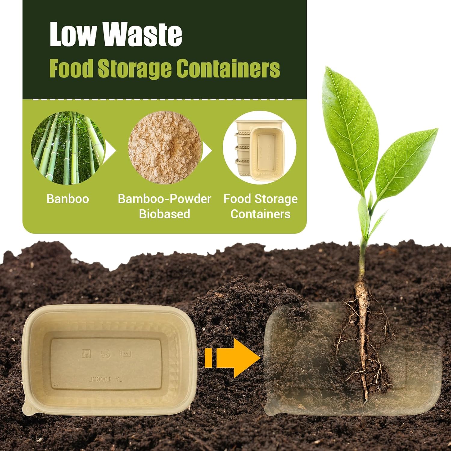 25Pack(50pcs) Meal Prep Containers Reusable, 32oz Bamboo-Powder Food Containers with Lids, Plant-based To Go Containers for Lunch - Microwave, Freezer, Dishwasher Safe