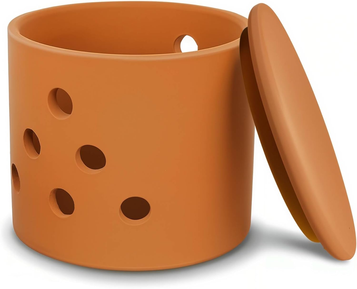 - ✅Multi Function Storage---The garlic keeper provides ideal storage conditions for garlic, onion, lemon, patato or ginger. Keep fresh for long time. And this garlic storage container only takes up little space on the counter. The terracotta garlic keeper is a good companion in your kitchen