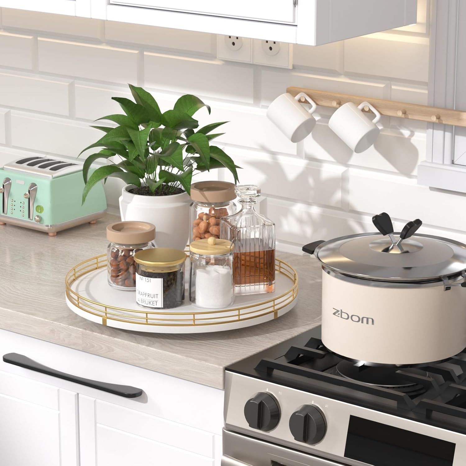 - 【Versatile Home Organizer】More than just a kitchen counter organizer, this lazy susan can also be used for coffee stations, bathroom essentials, or as a rotating tray for skincare and cosmetics. A true lazy susan organizer for cabinet, countertop, and beyond.