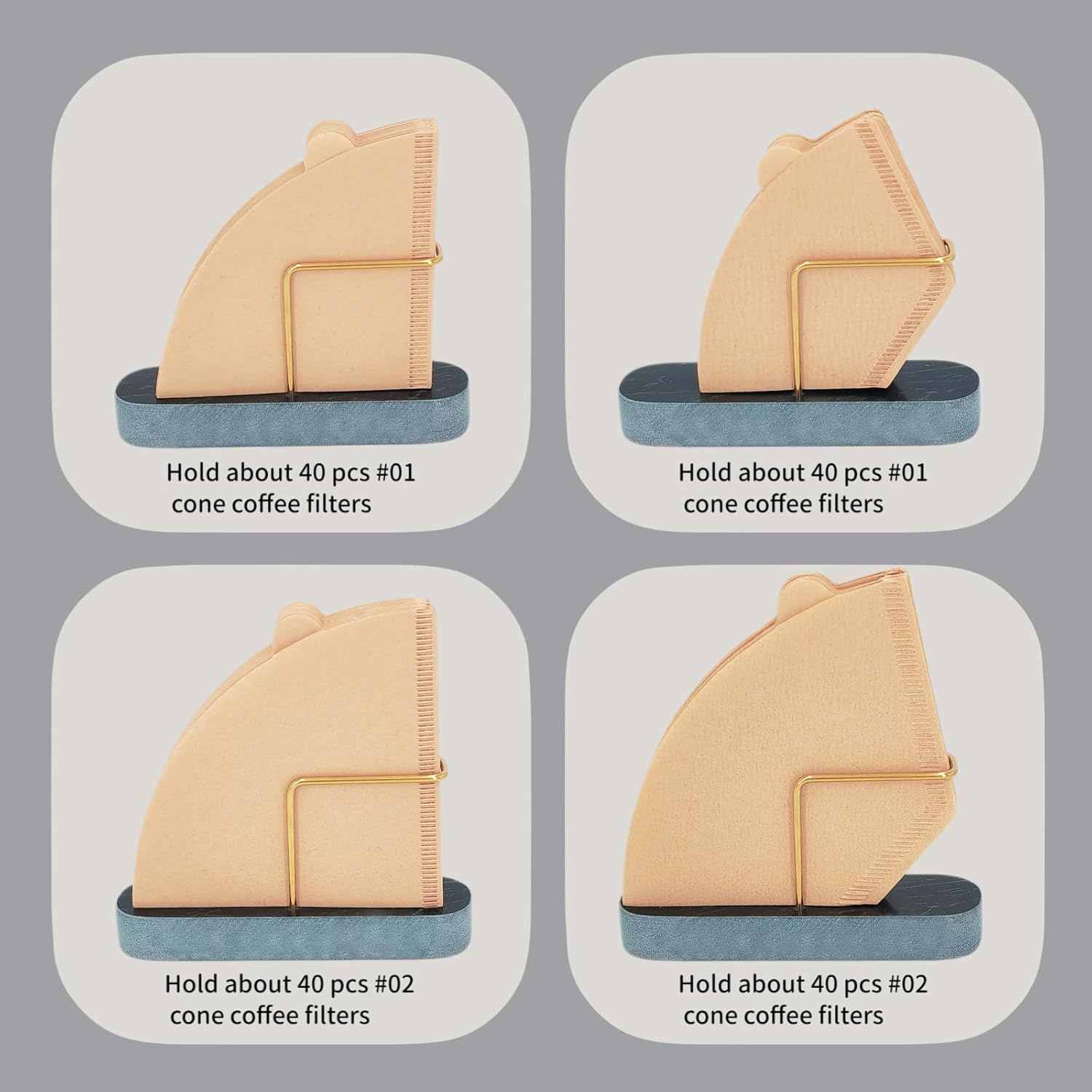 Cone Coffee Filter Holder for Counter, Coffee Filter Storage Container for Cone Paper Filters Size #01 & #02, Marble Base with Non-Slip Pad (Black)