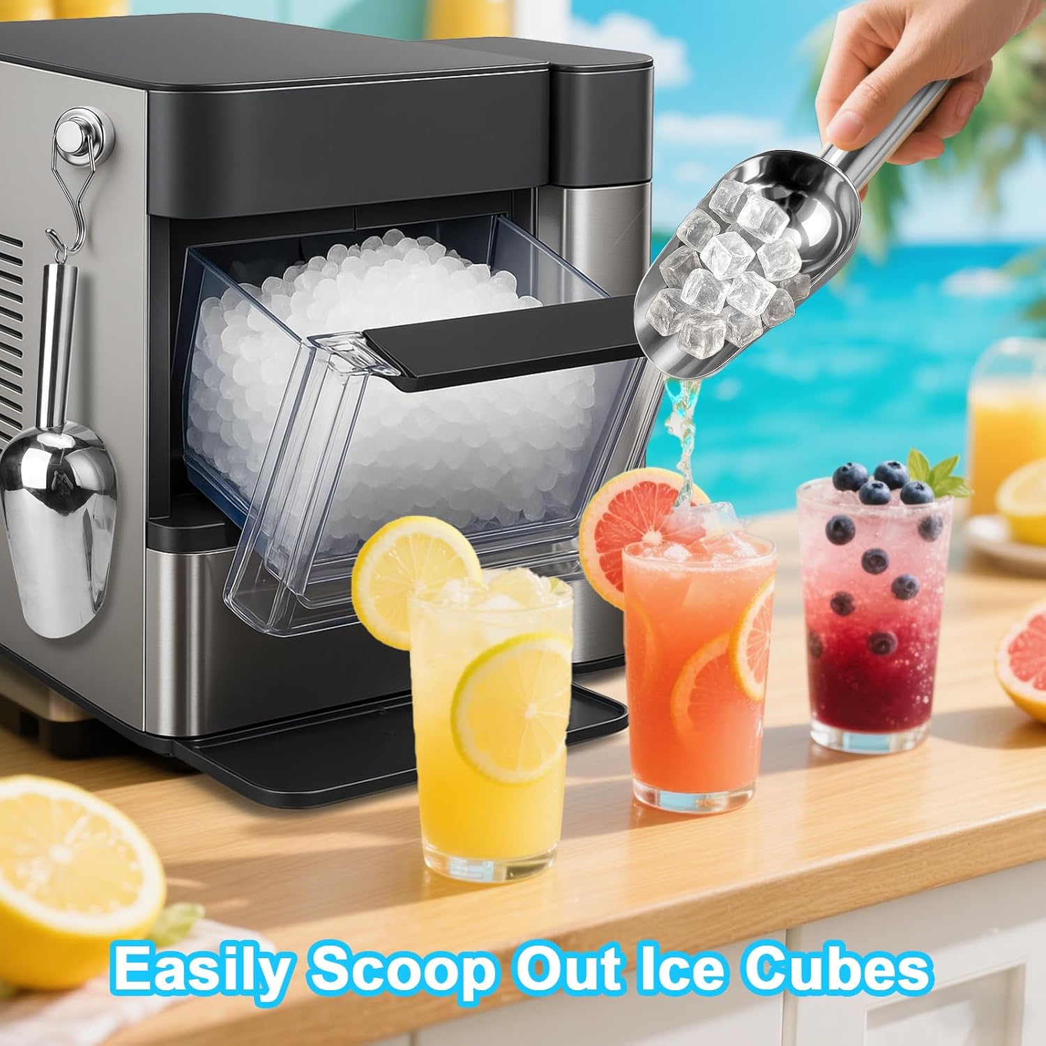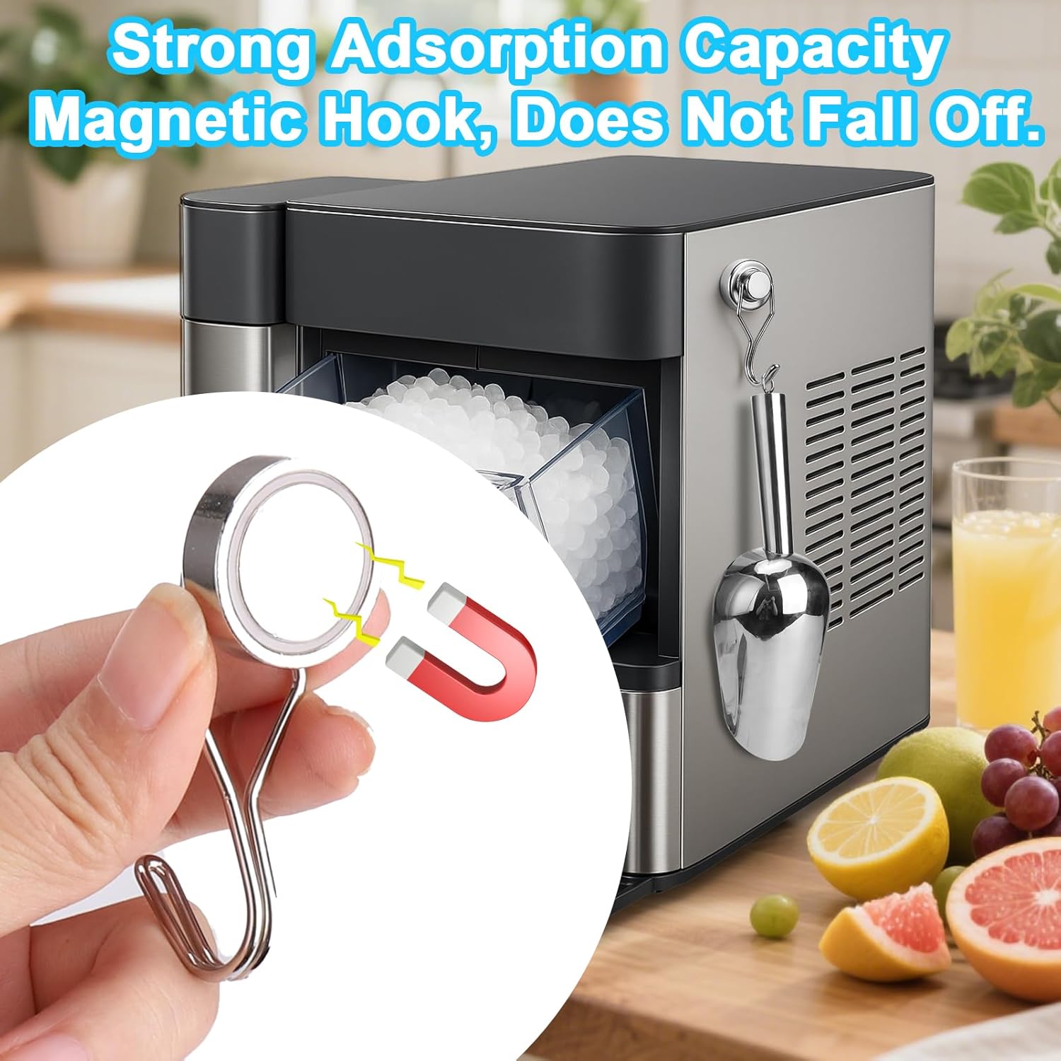 - Space-Saving Magnetic Hook: Grab your ice scoop in seconds. No drilling needed! The included strong magnetic hook attaches instantly to metal surfaces (fridge, cabinet), freeing up counter space. No more digging through drawers or ice cubes! Perfect for small kitchens, RVs, or bars.