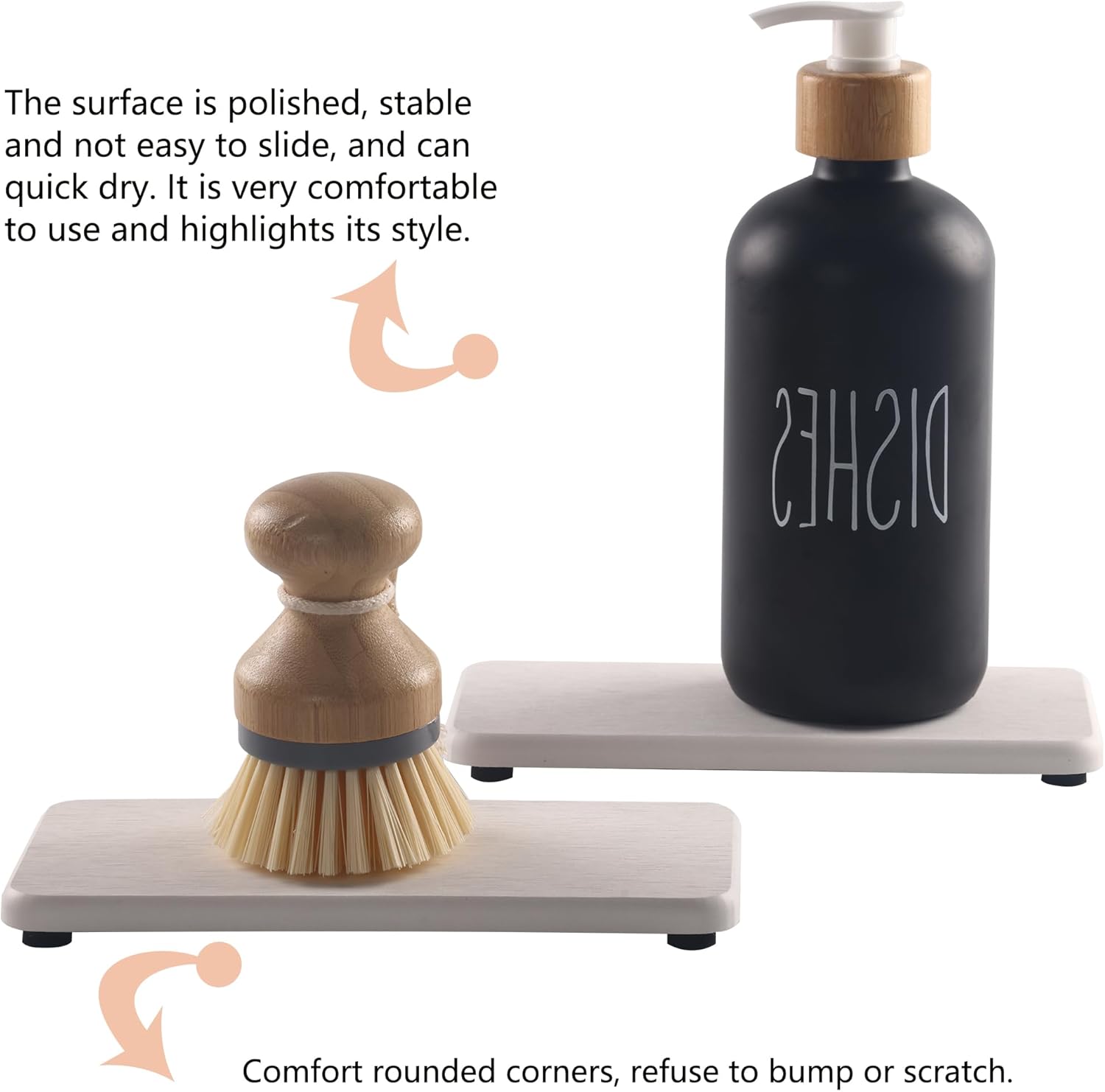 - Suitable to be used as absorbent mats for soaps / cups / soap bottle / dish sponge / make-up bottles, and anywhere you need to absorb water quickly and keep the table / countertop surface dry.