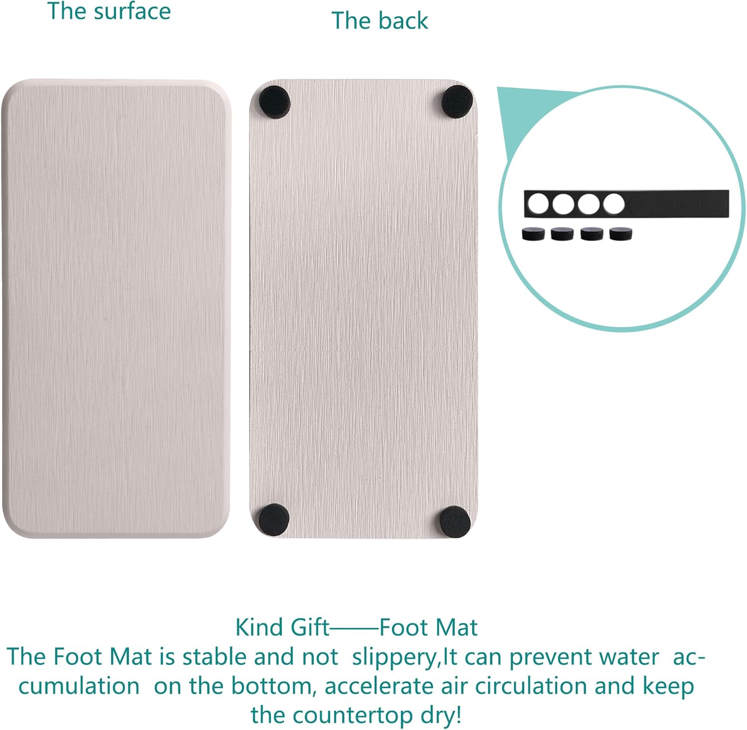 - Silicone footpads boost the slip-resistance of coasters while keeping them out of the bathroom vanity. This design improves the contact surface between the diatomaceous earth coaster and the air, accelerate moisture evaporation, and prolongs the service life of the product.