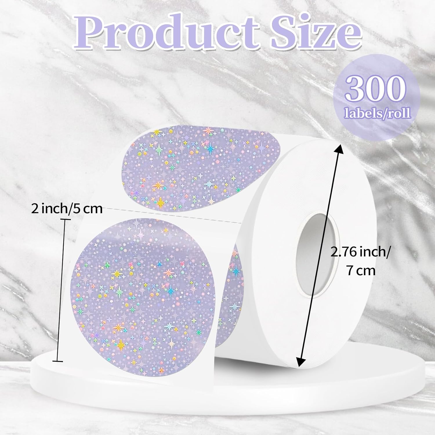 2''Holographic Thermal Label,Round Self-Adhesive Direct Thermal Label,Thermal Stickers for DIY Logo Design,Name Tag (300/Roll Purple Starry Sky