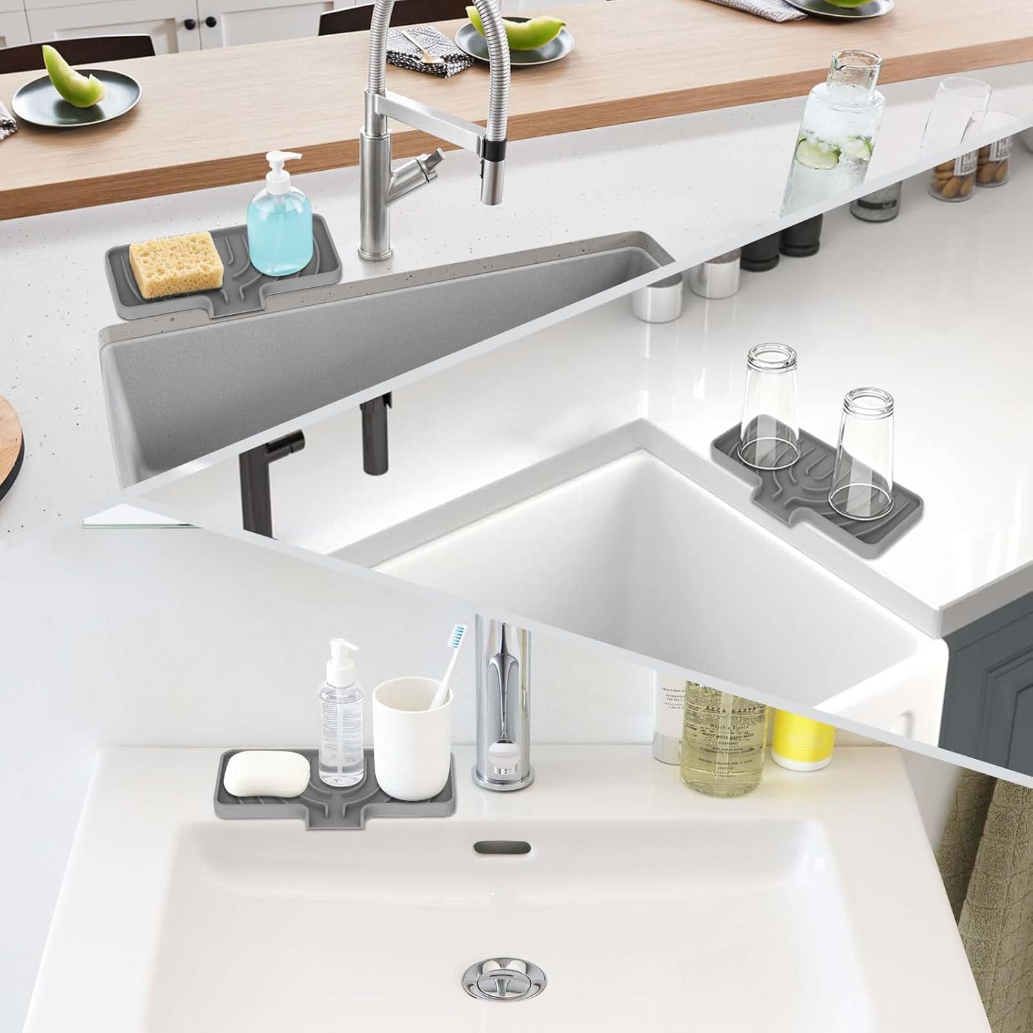 - Food-grade silicone material: The sink caddy made of food-grade silicone. It is durable, soft and resistant to deformation. This ensures the cleanliness and hygiene of the kitchen or bathroom area