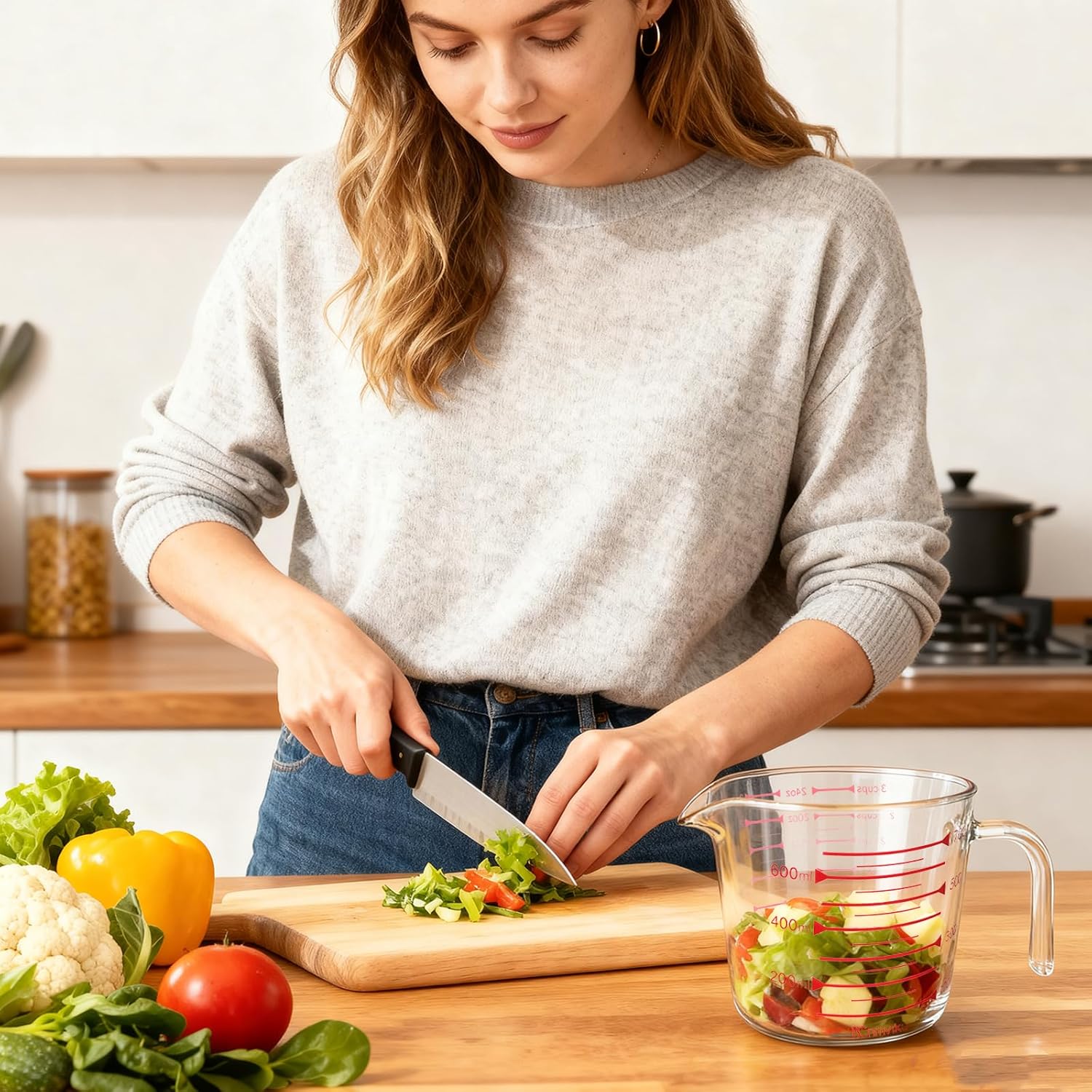 - 【Comfortable and Lightweight Design】: The high borosilicate glass measuring cup is lightweight and easy to handle, reducing strain on your wrists. This makes it perfect for various kitchen tasks, whether you're cooking, brewing coffee, or baking