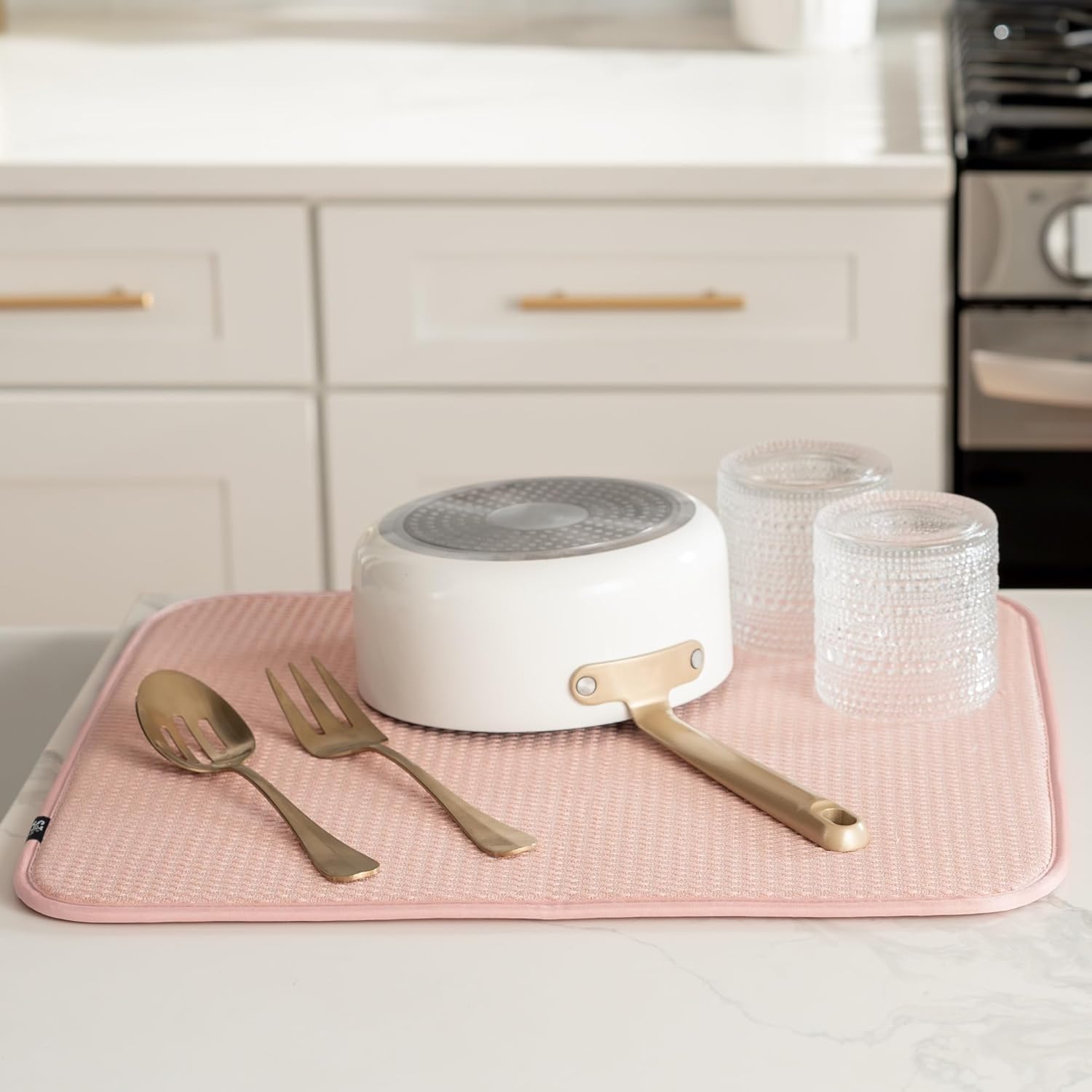 - Dish drying mat for kitchen counter protects surfaces from scratches and scuffs when placed under kitchen gadgets; multipurpose drying pads can be used as an appliance slider for a mixer or blender