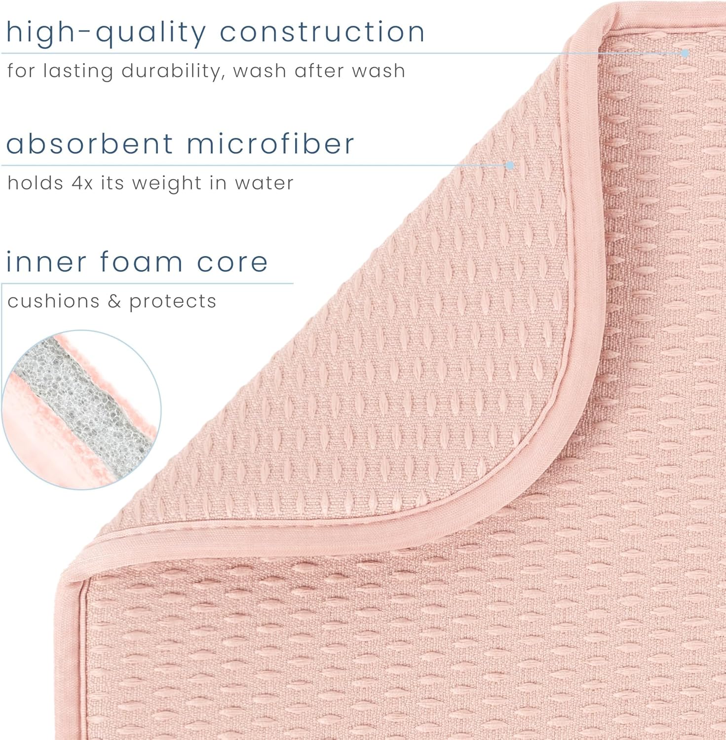 S&T INC. Dish Drying Mat, 16” x 18”, Absorbent Microfiber Kitchen Counter Mat, Drying Pad for Dishes, Utensils, Pots and Pans, Large, Diamond Texture, Pink