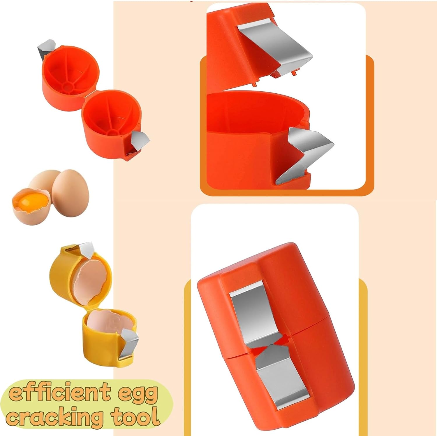 - Egg Shell Opener: This egg opener tool features an innovative oval groove that stabilizes various egg sizes, ensuring a clean and precise break every time. No more wasted yolks or uneven shells—enjoy seamless cracking whether you're preparing soft-boiled eggs or using it as an egg slicer for salads